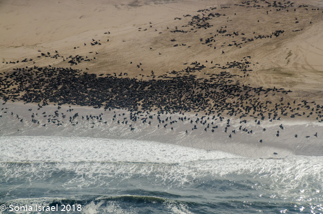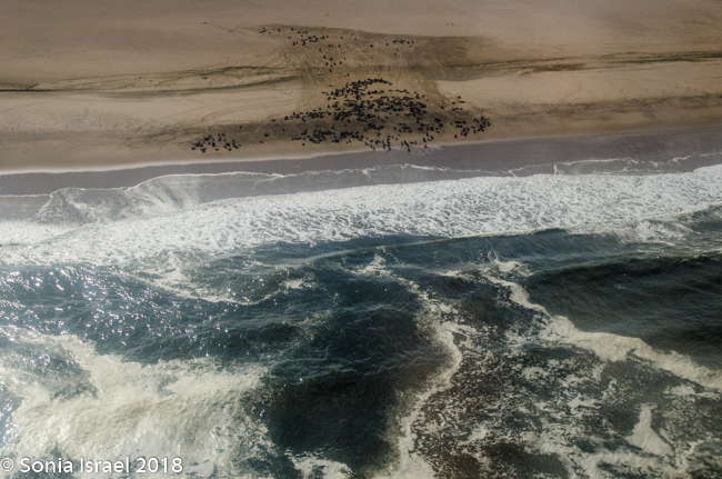 We flew over cape seal colonies which turned the coast black as there were so many hundreds of them.