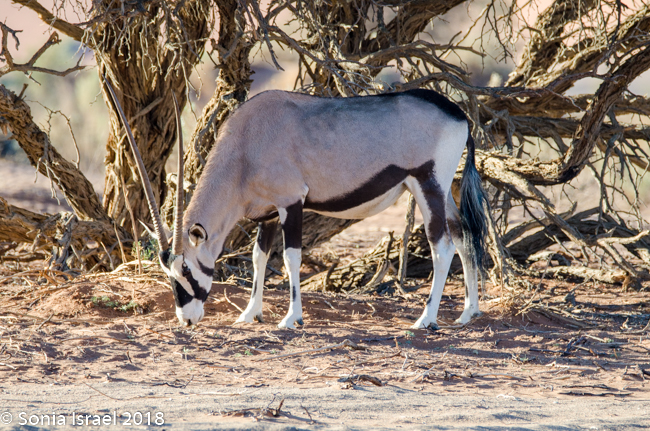 The guard at the gate house came over right after 7:00am, opened the gate and off we went. We saw oryx drinking out of a puddle and a jackal, running as fast as he could. The reserve is also known for ostrich, springbok, gemsbok, spotted hyaena and occasionally a brown hyaena, as well as the black-backed jackel (which we saw), the cape fox and birds galore.
