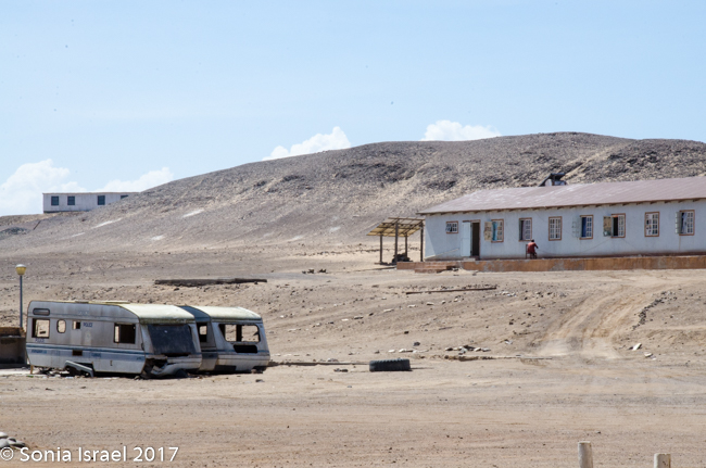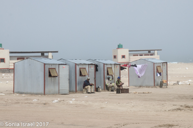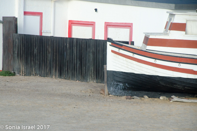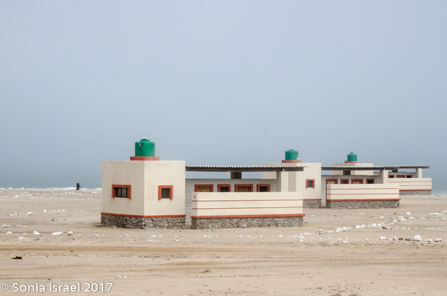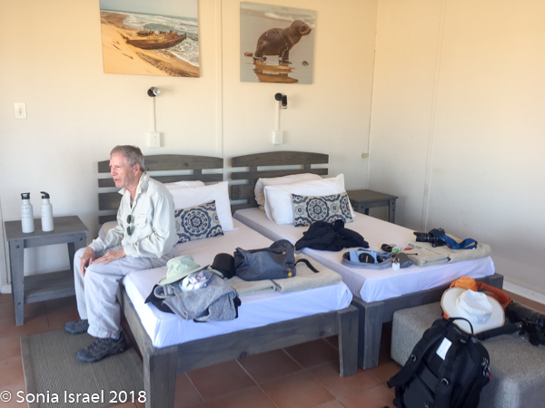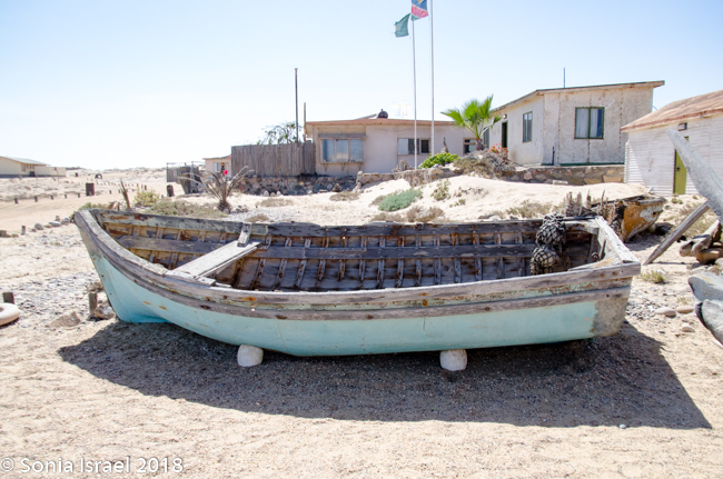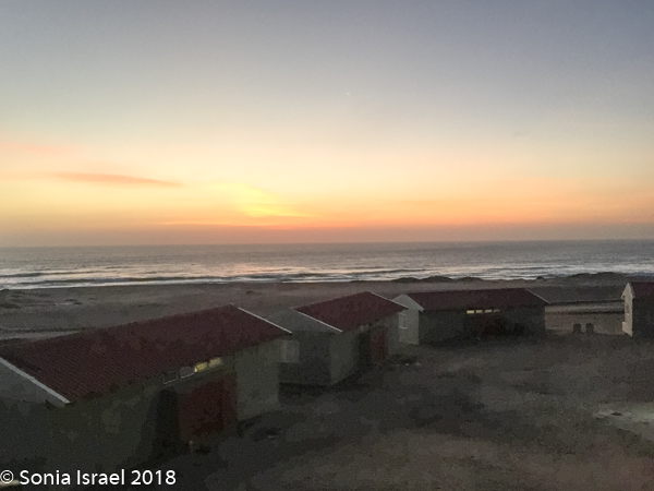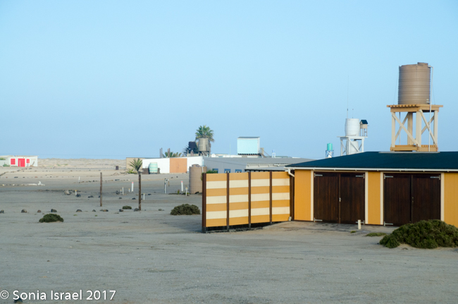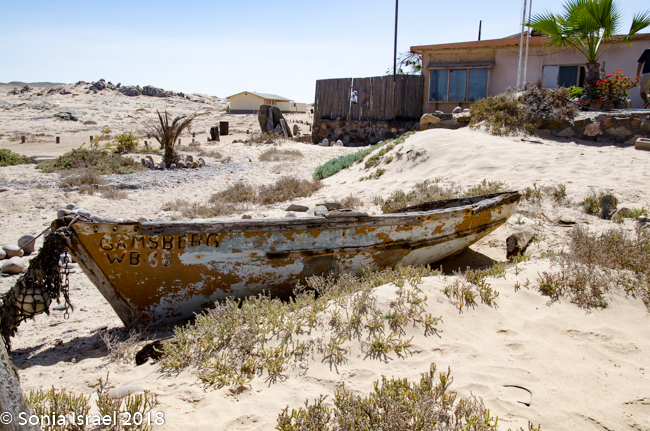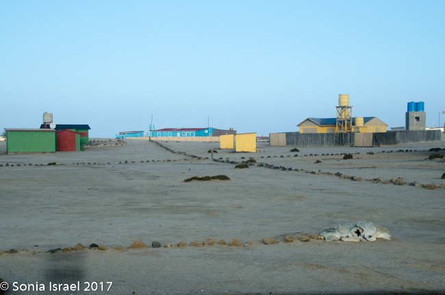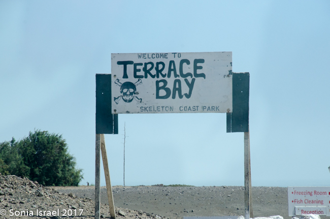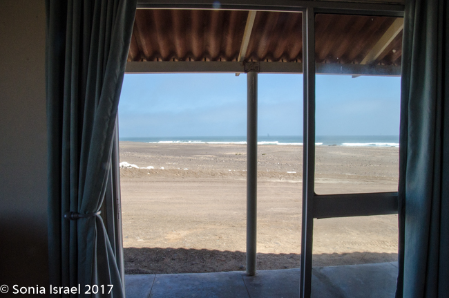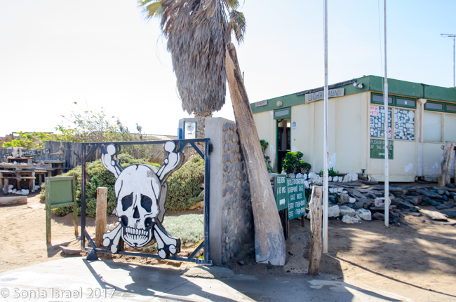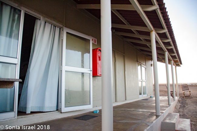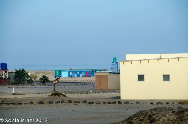 We finally reached our destination, Terrace Bay. This would be our home for the night as it is the only place one can stop along the Skeleton Coast. Terrace Bay is known for fishing and many people, especially from South Africa come here to fish. But to us it looked like a ghost town or a deserted town. Charles called it spooky. I called it creepy. Their website describes it as: “…an angler’s paradise offering an exceptional coastal experience …The resort is located on the coast, set in an undisturbed and peaceful spot, surrounded by the majestic dunes of the northern Namib Desert… You can hike, bird watch, spot game or witness breath-taking sunsets from atop the dunes.”