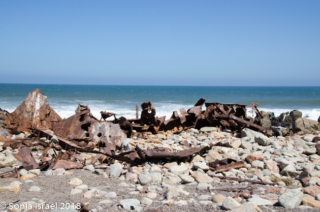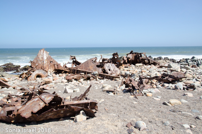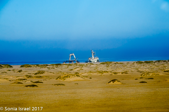The Zeila was just one of many, many ships that were shipwrecked here. I already wrote about the Eduard Bohlen, a 2,272 tom German passenger and cargo ship that was on route from Swakopmund to Table Bay. In September of 1909, it lost its way in the thick fog and ran aground at Conception Bay. Because of the change in the ocean tides, it now sits inland, and is partially buried in the sand. We saw it from the plane on our scenic flight (please see the post on Sossusvlei).