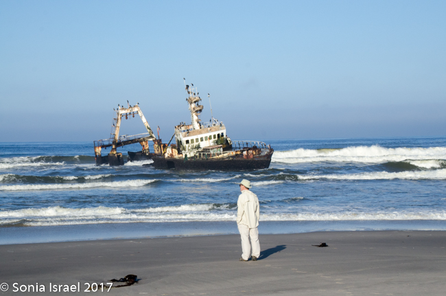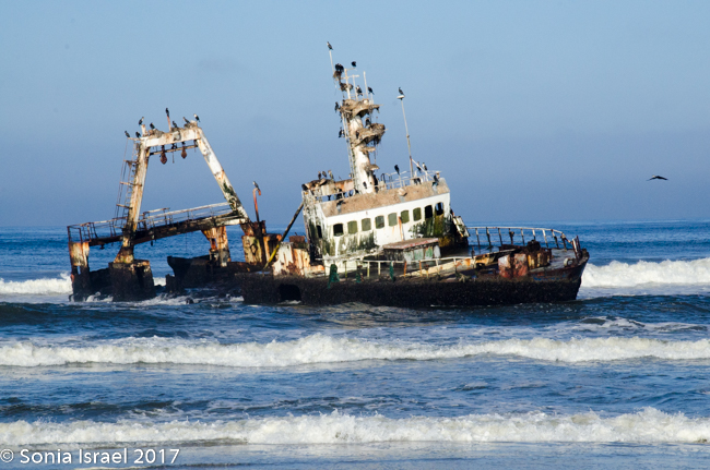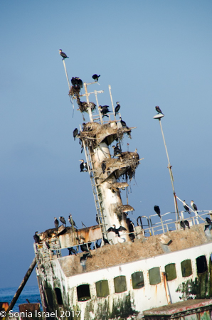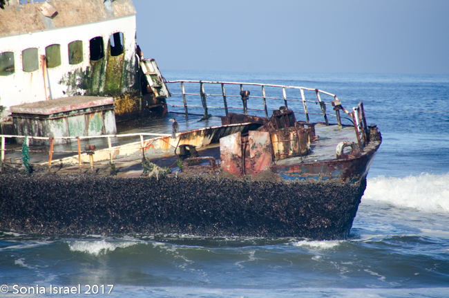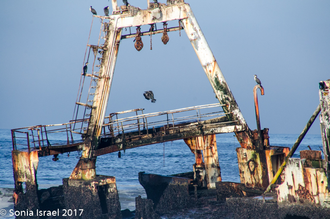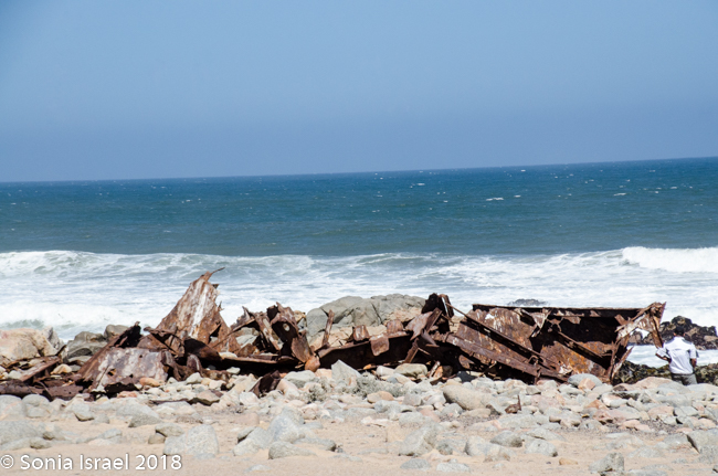 We drove and we drove. In the distance we could see a shipwreck. We drove the car onto the sand and parked. We climbed out and walked through the sand to see the shipwrecked Zeila, which was shipwrecked in 2009. We stood there watching the birds swarm the ship. It is now a good place for nests. I tried to imagine what the men must have felt or thought. Here they were stranded in a desert. No food. No water. No way to survive. And now the remains of the shop stand as a monument.