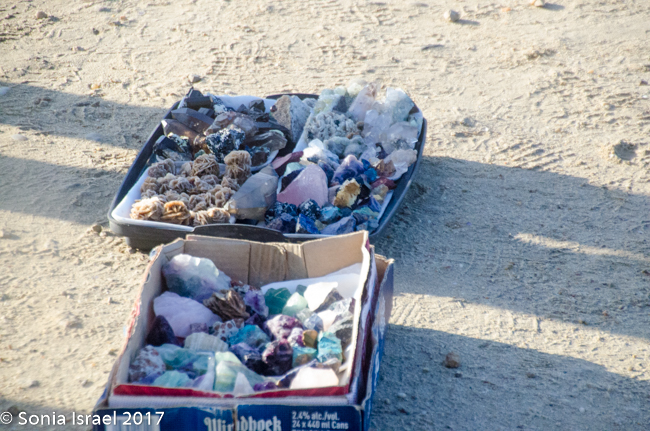 We drove and drove some more. The road turned back to sand. And then, along the side of the road, we started seeing little makeshift tables with quartz blocks on them. For sale. But there was no one around. IT was a bit bizarre. Table after table. Sometimes just an upside-down barrel. Full of quartz. Perhaps if we stopped the care and got out someone would appear from nowhere to collect our money. Or perhaps it was all on the honor system.