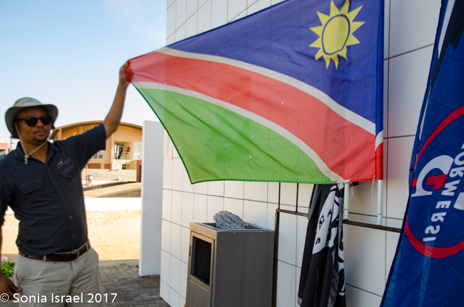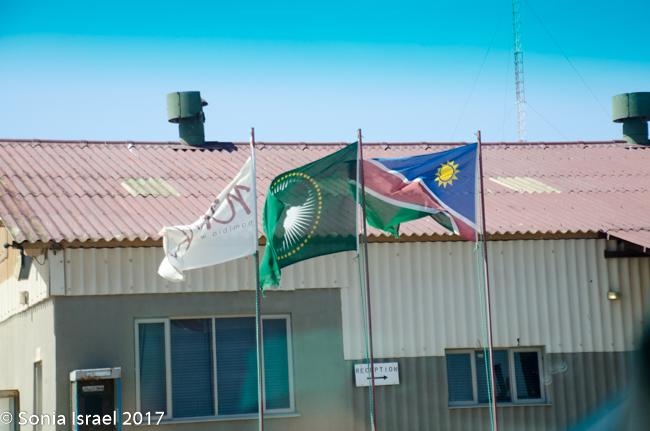 There was a small gift shop with the Namibian flag hanging outside. Charles held it out and explained that the green was for the land, the white for peace, yellow for the sun, blue for the sky and red – red was for the bloodshed.