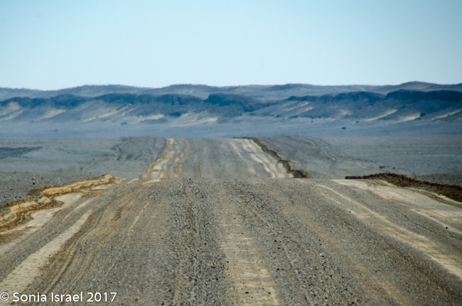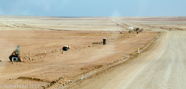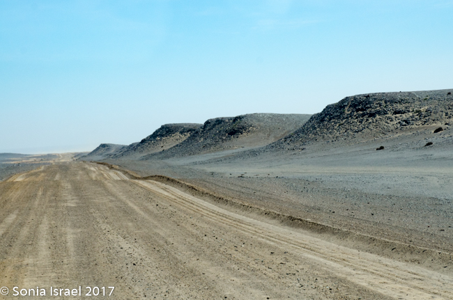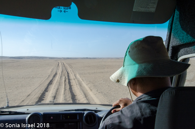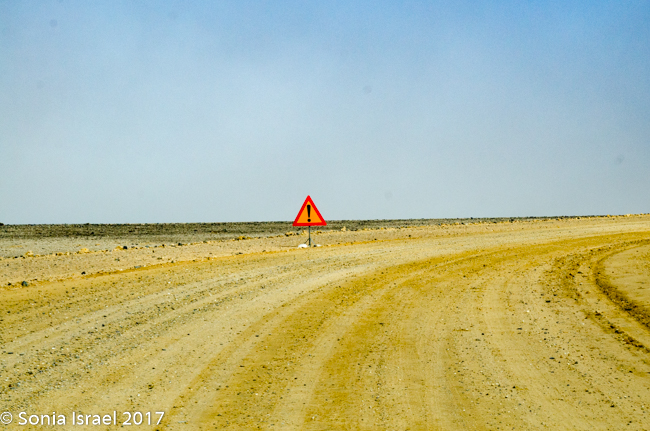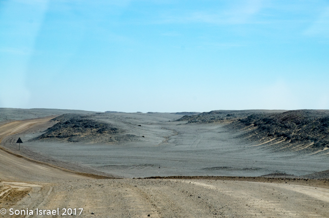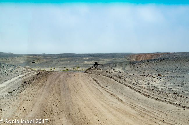 As we drove the terrain was constantly changing. This time it changed from white to black to red. Was it because of wind currents? Rain? Rivers? Minerals? All of the above. But the change was really so sudden like someone drew it with a ruler or protractor.  And the road, which was all sand with stones, would go from smooth and easy driving to rough terrain that made our insides feel like milkshakes, to soft sand to deep grooves that without a 4×4 you would get stuck in.