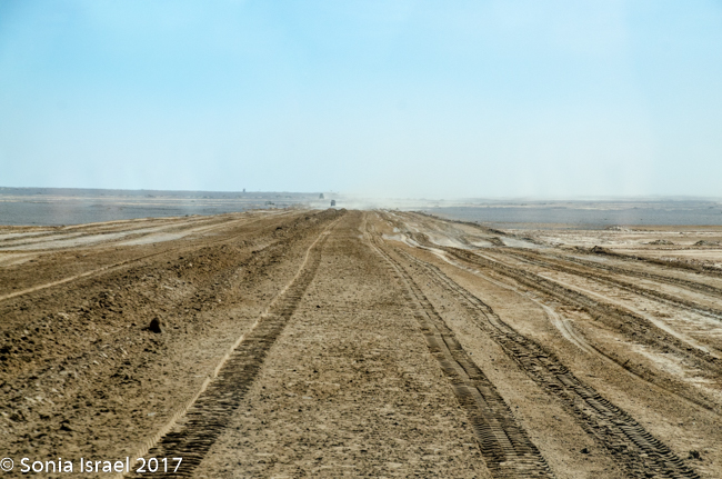 And I just tried to take in the vastness of this moonscape. The flatness, with a small hill now and then. The sun rising in the east as we headed north, throwing our car’s shadow onto the ground as if another car was racing us.