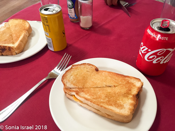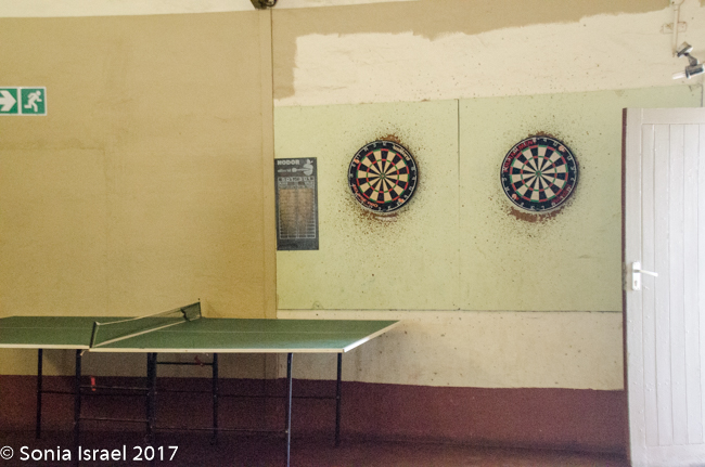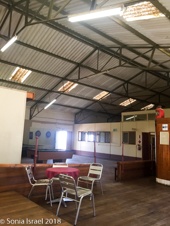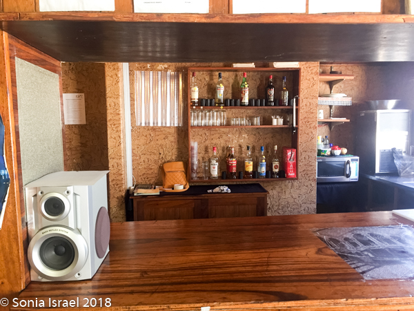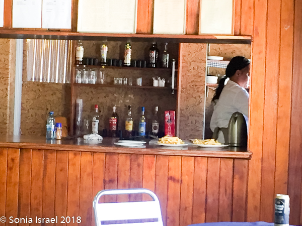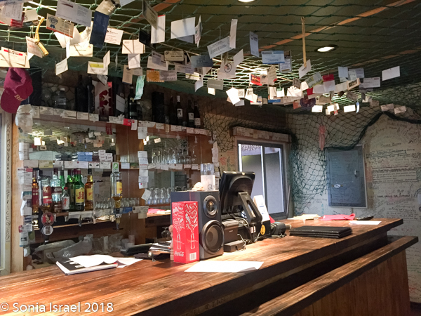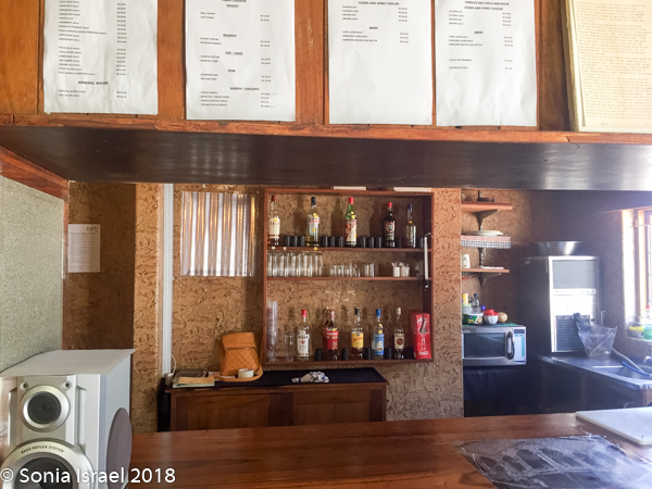 Well, when we pulled in, it looked totally deserted. It wasn’t as it turns out, but it looked that way. The registration desk is in a large hall with a pool table, lots of empty space, a bar and a few tables. After registering and leaving a deposit for our keys (like we would want to take them?), we went over to the bar for some lunch. The menu had some appealing items. But when we asked for something the answer seemed to always be – “we are out of that. Waiting for a delivery in the next few days.” We finally settled on cheese toast for Andy and me, and a Russian (sausage) for Charles, as those were really the only choices. There were flies everywhere. Creepy.