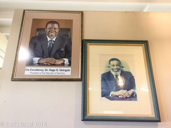 Charles was so excited to be back that he kept trying to take just the right selfie. “Charles,” I said, “I do have a real camera here!” So he let me take his picture, of course posing with a map of Namibia. A map? Yes, Charles would fold his index finger and stick out his thumb. And there it was, the map of Namibia.
