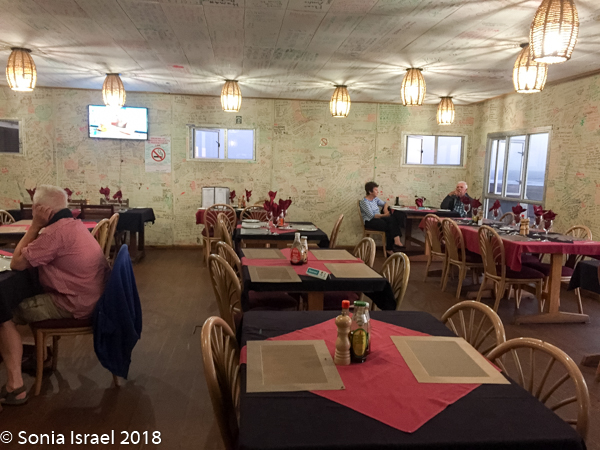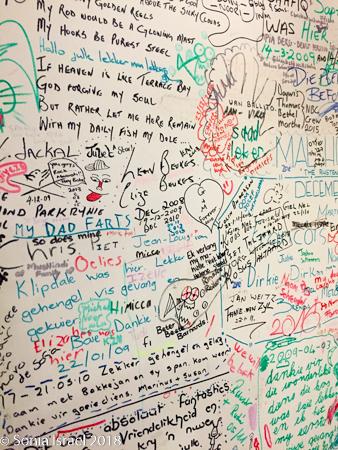 We walked over to the restaurant for dinner and discovered there really were other people here. The walls of the restaurant were covered with signatures. When I say covered, I mean there was barely a free centimeter. We wanted to add ours, but were told they had no more pens. Seriously?