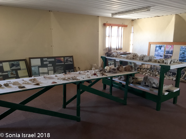 After watching for a while we walked over to the small museum filled with specimens from the area. Penguin skulls. Black rhino skull. Whale bones. Lower jawbone of a humpback whale. Whale baleens which looked like palm fronds. Elephant skull and teeth. And so much more all in this small one-room museum.