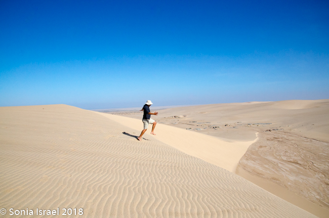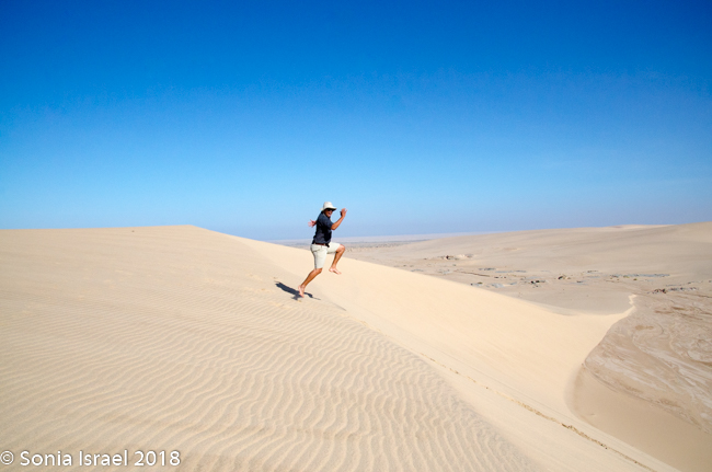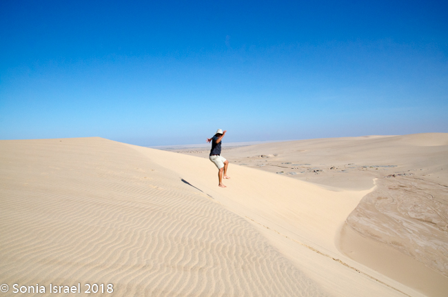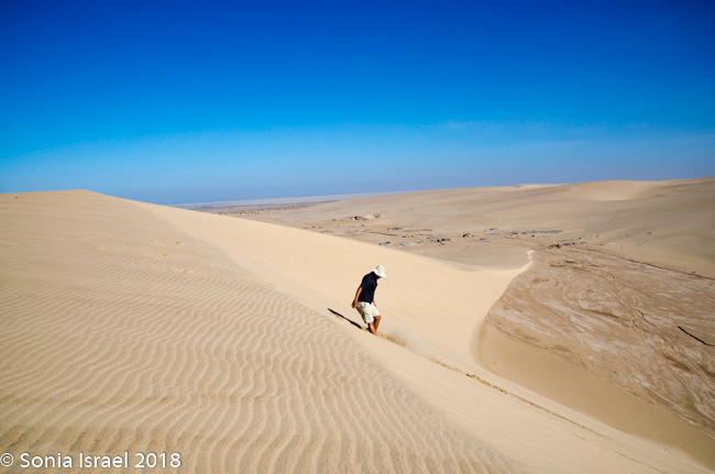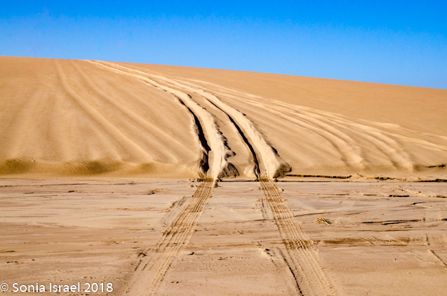 It was time to drive down off the dune. Charles stopped at the steepest possible spot, we held our breaths and slowly drove down. Such excitement!