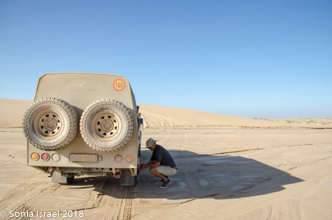 The terrain changed again as we approached Torra Bay. There were now slight undulations and the dunes were no longer flat. All of a sudden, everything disappeared. We couldn’t see a thing. It was an epic sandstorm. Luckily all our windows were closed. And just like that, it stopped and everything was flat again.