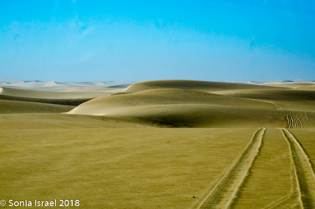 The road was paved, but grooved and rough, at least for a while. We were surrounded on both sides by sand. Sand, sand and more sand. And to our left, on the west side, on the other side of the sand, was the Atlantic Ocean. Other than that, there was not much to see.