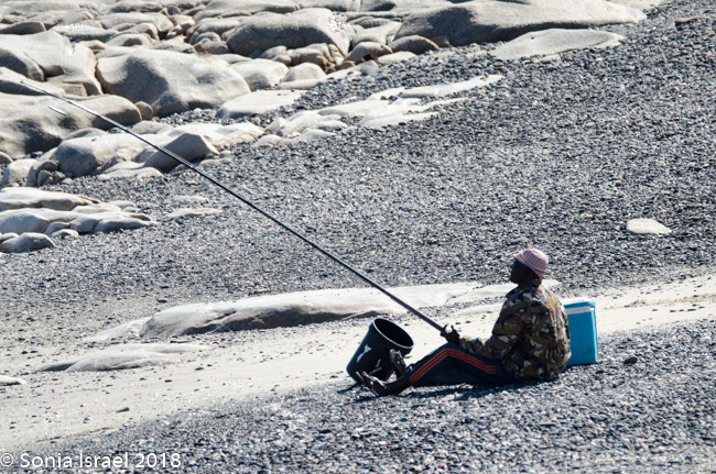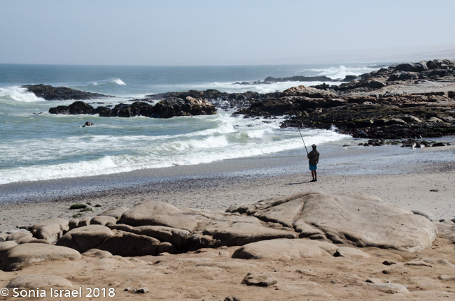 Every few miles I would see a sign with a name and a picture of a man holding a fish. This is a prime ocean fishing area. The fishermen buy a permit for N$15 and