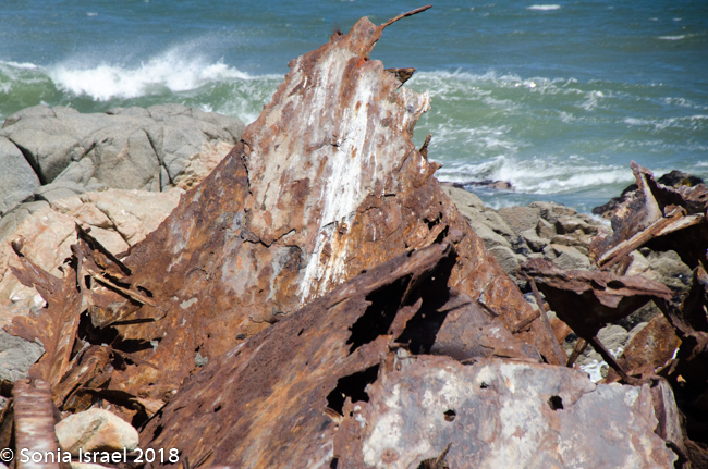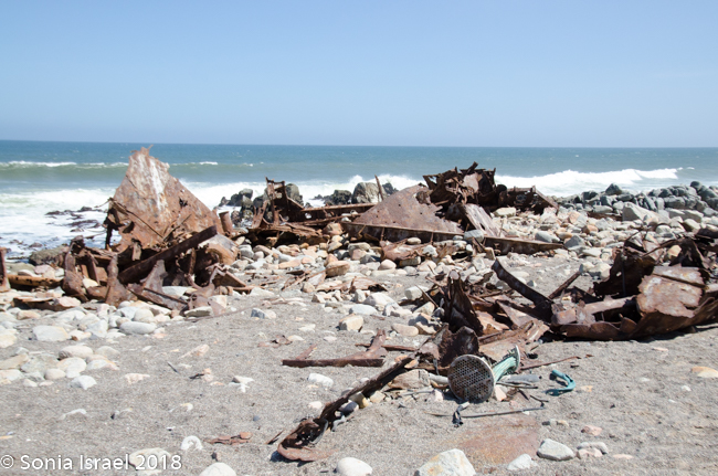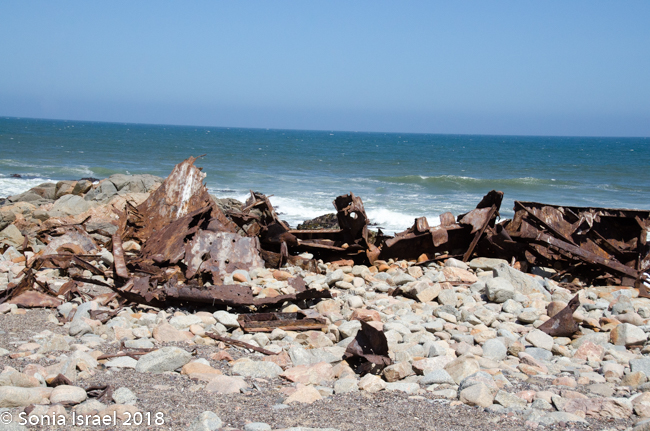 We drove out to see another shipwreck, the Suiderkus. This was a relatively modern fishing trawler which ran aground on her maiden voyage in 1978, despite having a highly sophisticated navigational system. After a few months most of the ship had disintegrated but a large portion of the hull was still sitting on the beach. Pieces were strewn everywhere as the water bombarded the remains day after day, month after month, year after year.