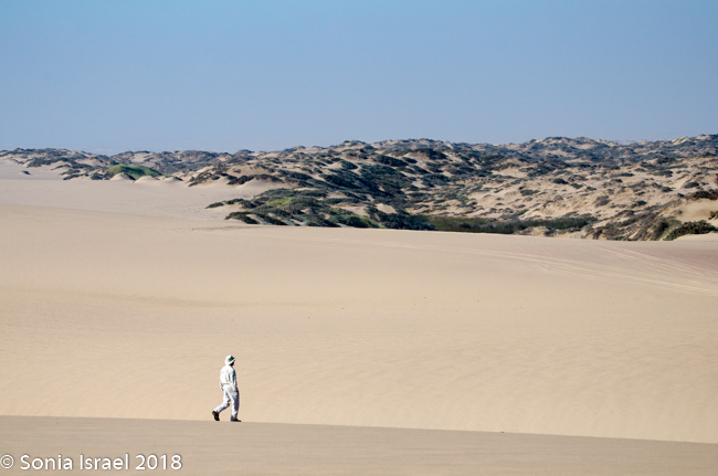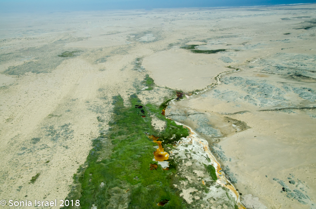 This whole place, the whole Skeleton Coast, looks as desolate as the moon. But unlike moon it is teeming with life. Shrimp for the flamingos in July. Oryx. Lions. Hyenas. Other organisms.  Its just that we can’t see most of them.