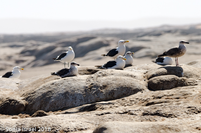 After breakfast today we hit the road heading north to the Skeleton Coast. We were driving in Dorob National Park, a protected area in this region of Erongo. It is 990 miles long and covers 41,500 square miles, from the Kuiseb Delta, just south of Walvis Bay, to the Ugab River, where we were heading. There are about 75 species of birds that live here and it feels like we saw many of them.