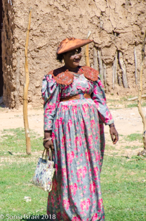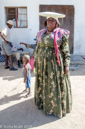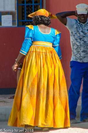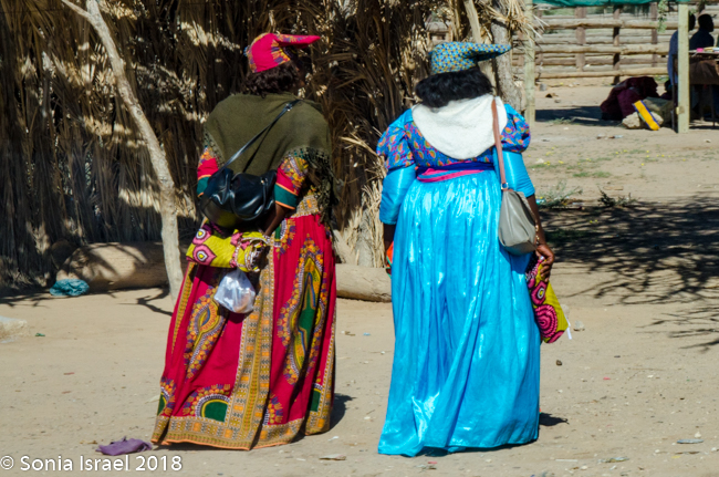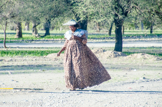 And that is the most distinguishing feature of the Herero. The women wear Victorian-style floor length, big and puffy crinoline gowns, with many layers of petticoats. I had noticed this when we were driving and thought it was the most interesting thing. Victorian dresses in the middle of Africa? Victorian dresses in this heat? Yes, Victorian dresses in Namibia.