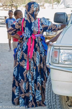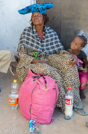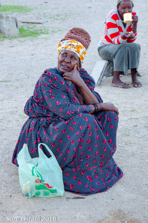 Ueera wanted to make a stop at the post office in Sesfontein and again asked our permission to make that stop. Of course, again, we were thrilled to visit the town. I had mentioned to Ueera that I would have loved to photograph Herero women in their beautiful dresses and he told me this would be my opportunity. It was a Friday afternoon, school was out at 1:00 and it was pay-day, and so the women ewould be dressed up and the center of town would be full of children and adults of all ages.