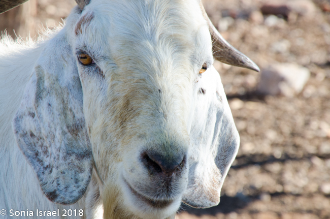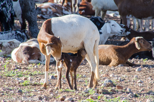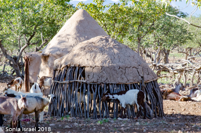 We parked our car and Ueera left us taking pictures of the sheep and goats while he went to tell the tribe elder that we were there. So it was us and the goats, who totally ignored us. The Himba homes are all round, better for heating, and even the huts around the livestock were round. I did notice one square home. Turns out that one of the men is so tall, he can not stand up in the round hut, so they built him a square home with a higher ceiling.