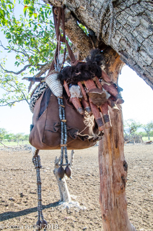 The Himba never bath, except at birth and at death. In fact, it is forbidden to touch water. According to legend, this belief dates back to the great droughts where water was scarce and only men were allowed access to water for washing purposes. We had heard this and I was curious as the Himba would have strong body odor. But they did not. How could that be? Here is the rest of the story,