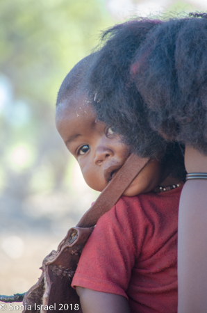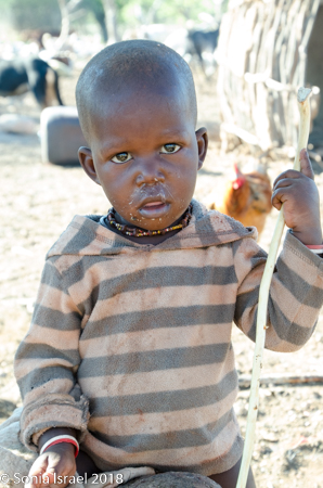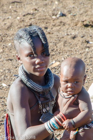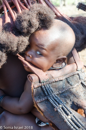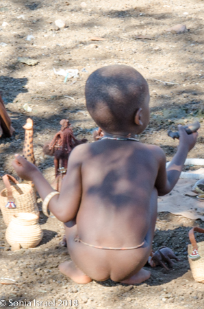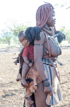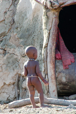 We did not see any men, as they were all out with their cows, or more likely, in the bars in town. But we were told that the men keep their hair very simple. Single men wear an ondatu braid on the back of their head, married men cover their hair with turbans for the rest of their lives, only shaving their hair and removing their turbans during funerals. We did however see lots of little babies and boys who all had shaved heads. Little babies also wear bead necklaces and as they get older, shells are added on.