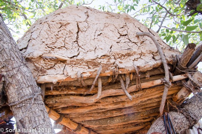 The Mopane tree grows in Namibia and is recognized by the butterfly shaped leaves. In addition to using the bark to build fences, it is part of their traditional medicines. When a Himba has a stomach ache, the leaves are boiled and then chewed to relieve the pain. Chewed leaves are also used to treat slow-healing wounds and to stop bleeding. They also drink the water from the boiled leaves to fight colds.