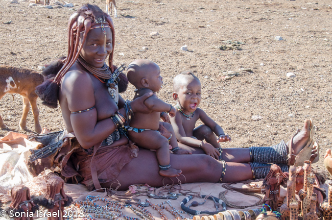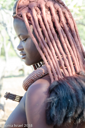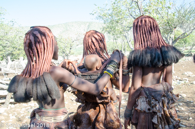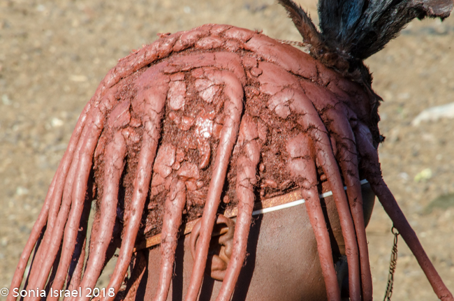 The Himba women (and not the men) apply a mixture of special pastes, called otjize, which are scented with aromatic resins. The color of this paste is a deep orange, which represents the color of the red earth and of blood, the essence of life. The Otjize is believed to ensure the ideal of Himba beauty. But practically speaking, this paste keeps the skin clean and moist, blocks hair growth (why don’t Americans know this?) and acts as a sunscreen and insect repellent.