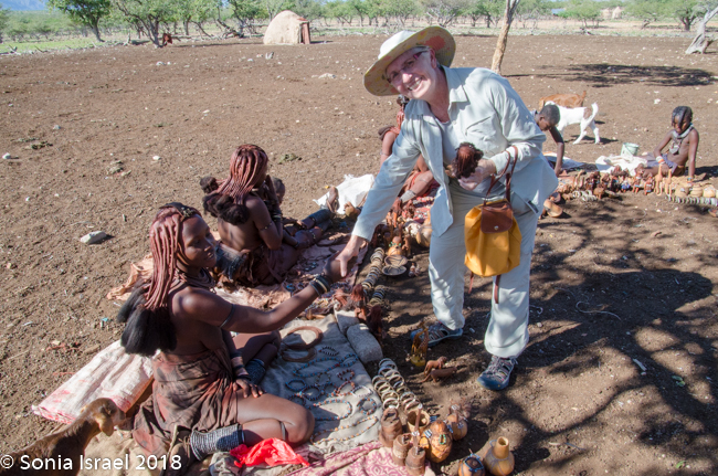 So, how did we communicate with the Himba? Ueera did all the translating. He translated what they were saying. He translated and helped me with my bargaining. He explained to us the different hairdos and clothing. He had the women pose for our pictures. It actually made me a bit uncomfortable, as he posed them for us. They are used to it, I imagine, and they likely to it in exchange for their oil and flour and our cash. But it still made me uncomfortable. I wish I could have communicated directly with them. Just saying thank you, and shaking hands, was not enough.