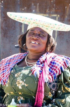 The Herero, like the Himba, traditionally were semi-naked. But when the German missionaries came in the late 1800s, they discouraged nakedness among the Herero and essentially coerced the women into wearing these Victorian dresses. The Herero women adapted the style and to this day they still wear these dresses. The dress is made up of a bodice that buttons up close to the neck, long sleeves and a shawl worn across the shoulders. They are made of vividly colored fabric and while the daily dresses are often patch-worked, the ones for special occasions are made from a single cloth. The women also wear a hat, or headdress, which is built to represent the horns of their cattle, as cattle are so important to the Herero. And the women, at least the older ones, wear these dresses and hats every day to do their chores, walk to the store, all the time. While the older Herero women fiercely protect their dresses as a crucial part of their cultural identity, the younger generation we saw were in jeans and t-shirrs, or short skirts. Progress? And although the dresses were often quite beautiful (as are the women!), all I could think of was how hot the women must be with those long, heavy dresses.