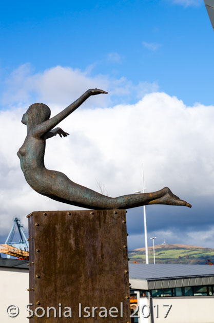 g over to the North side of the river, known as the more down to earth, less touristy side of town. Along the way we passed lots of sculptures. There was one bronze sculpture, called The Linesman, commemorating the tradition of docking in the area.