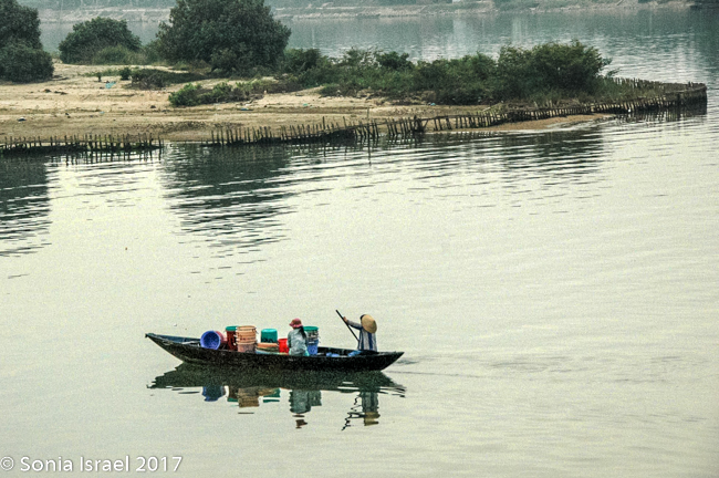And then it took about 40 minutes to get into town. The drive was interesting. The land seems very flat although in the distance one can see mountains. The houses were all very square, somewhat colorful, but really rather boring looking. No very interesting architecture. The roads were empty (it was 6:30 on a Sunday morning after all). The one bright spot was the carpets of purple flowers along the side of the road. We noticed stone sculptures that looked like people along the road as well. Turns out they were cairns (man-made pile or stack of stones) used as markers along the numerous single-file roads or paths that crisscrossed the island…