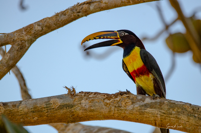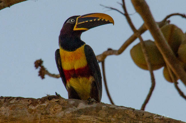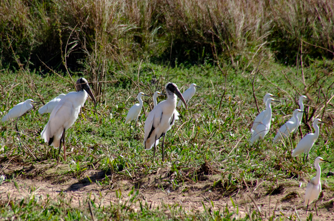 And this might be the best time to show you all those 149 birds. For those that care, we saw: Orange winged Amazon parrot, blue fronted Amazon parrot, Anhinga, smooth-billed Ani, Mato Grosso Antbird, barred Antshrike, great Antshrike, rusty-backed Antwren, chestnut-eared Aracari, Southern Beardless-Tyrannulet, Chopi Blackbird, unicolored Blackbird, grey-crested Cacholote, solitary (solitary black) Cacique, Southern crested Caracara, yellow-headed caracara, red-crested Cardinal, yellow-billed Cardinal, rufous Casiornis, Chaco Chachalaca, neotropic cormorant, bay-winged cowbird, giant cowbird, screaming cowbird, shiny cowbird, guira cuckoo, squirrel cuckoo, bare-faced curassow, black-capped donacobius, scaled dove, white-tipped dove, Muscovy duck, cattle egret, great egret, snowy egret, glittering-bellied emerald, aplomado falcon, bat falcon, saffron finch, campo flicker, rusty-margined flycatcher, short-crested flycatcher, vermillion flycatcher, yellow-olive flycatcher, magnificent frigate, purple gallinule, masked gnatcatcher, picui ground dove, ruddy ground dove, chestnut-bellied guan, black collared hawk, great black hawk, roadside hawk, savanna hawk, white-tailed hawk, boat-billed hawk, capped heron, cocoi heron, striated heron, whistling heron, pale-legged honero, rufous honero, bare-faced ibis, buff-necked ibis, green ibis, plumbeous ibis, jabiru, rufous-tailed jacamar, wattled jacana, plush-crested jay, purplish jay, white-throated kingbird, Amazon kingfisher, green kingfisher, ringed kingfisher, great kiskadee, snail kite, pied lapwing, Southern lapwing, limpkin, blue and yellow macaw, golden collared macaw, hyacinth macaw, gray-breasted martin, chalk-browed mockingbird, white-rumped monjita, band-tailed nighthawk, nacunda nighthawk, black-crowned night-heron, scissor-tailed nightjar, black-fronted nunbird, crested oropendola, southern burrowing owl, monk parakeet, black-hooded nanday parakeet, peach-fronted parakeet, white-eyed parakeet, yellow-chevroned parakeet, scaly-headed parrot, common pauraque, picazuro pigeon, rock pigeon, blue-throated piping guan, great Potoo, ferrunginous pigmy owl, great Rhea, grayish saltator, southern screamer, double-collared seedater, rusty-collared seedater, red-legged seriema, black skimmer, house sparrow, rufous-collared sparrow, rusty-backed spinetail, yellow-chinned spinetail, roseate spoonbill, wood stork, Sunbittern, Sungrebe, southern rough-winged Swallow, white-winged Swallow, gray-headed tanager, palm tanager, sayaca tanager, silver-beaked tanager, large-billed tern, yellow-billed tern, greater thornbird, rufous-bellied thrush, rufescent tiger-heron, undulated tinamou, pearly-vented Tody-Tyrant, toco Toucan, blue-crowned trogon, orange-backed troupial, cattle tyrant, black vulture, lesser yellow-headed vulture, turkey vulture, black-backed water-tyrant, masked water tyrant, narrow-billed woodcreeper, golden green woodpecker, lineated woodpecker, pale-crested woodpecker, white woodpecker, gray-necked wood-rail, thrush-like wren, squirrel cuckoo.