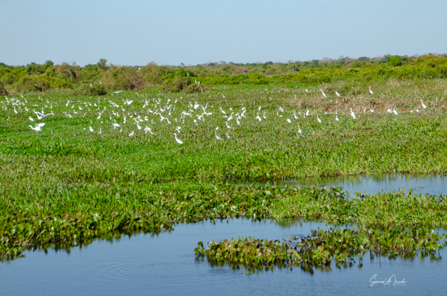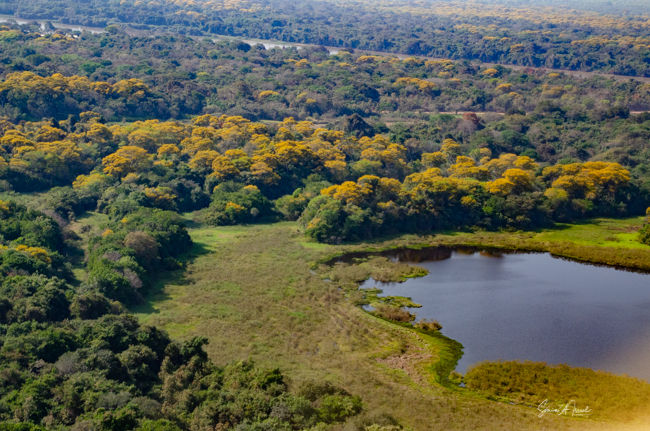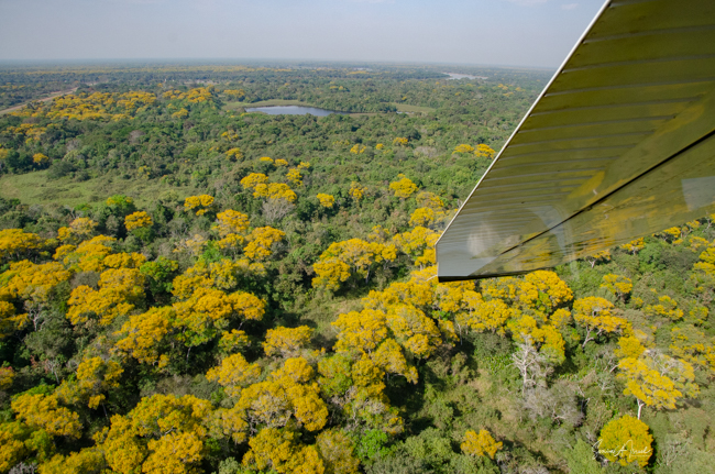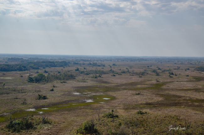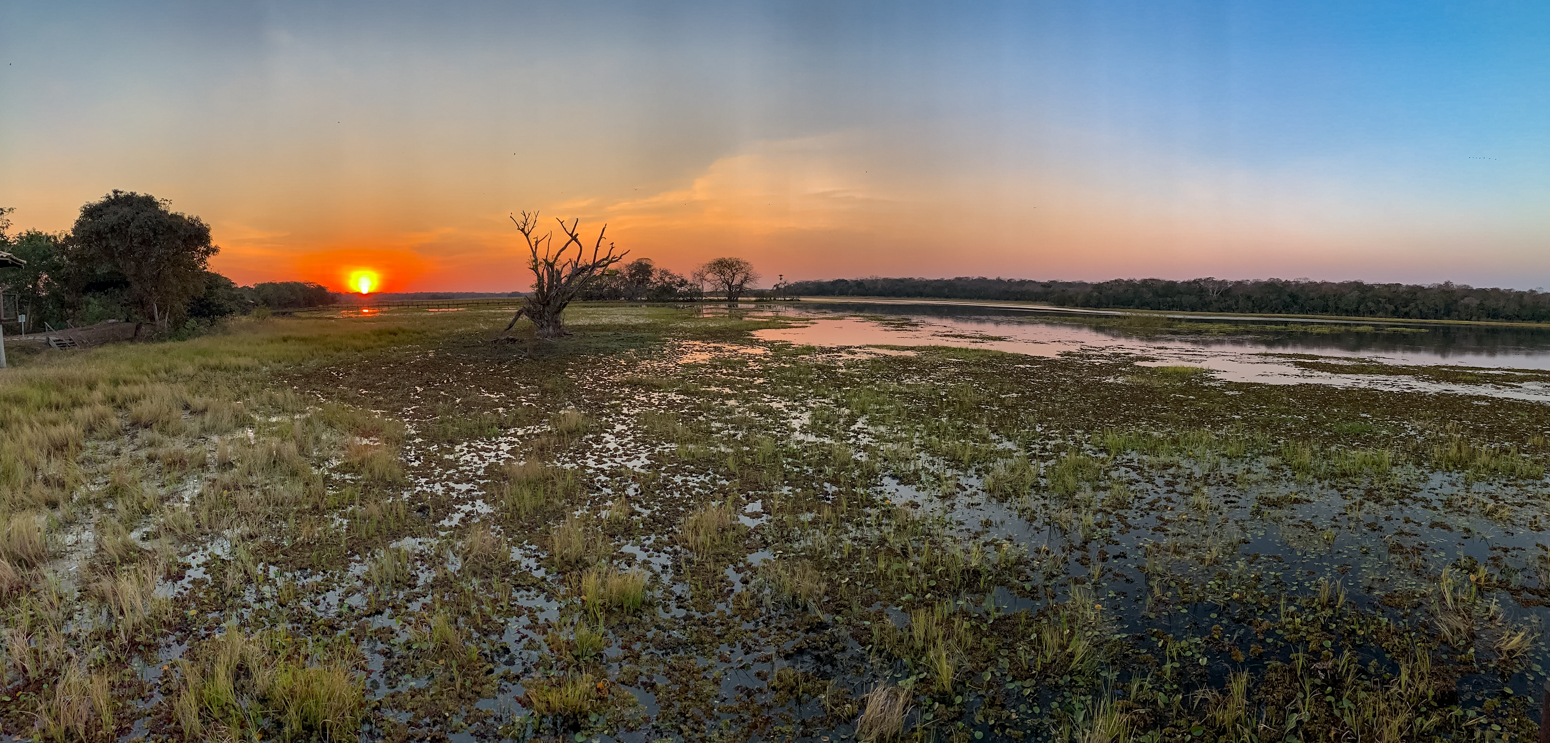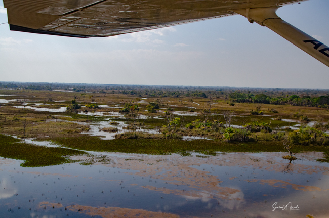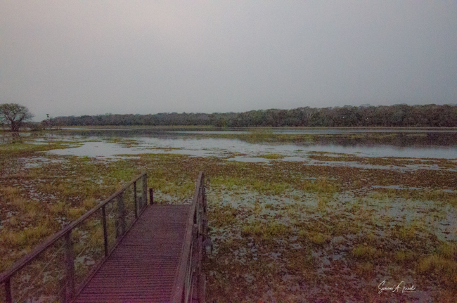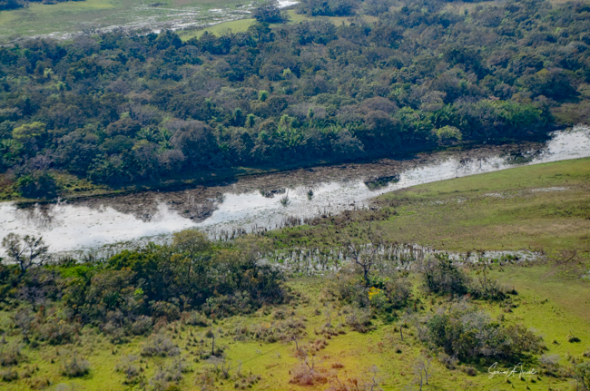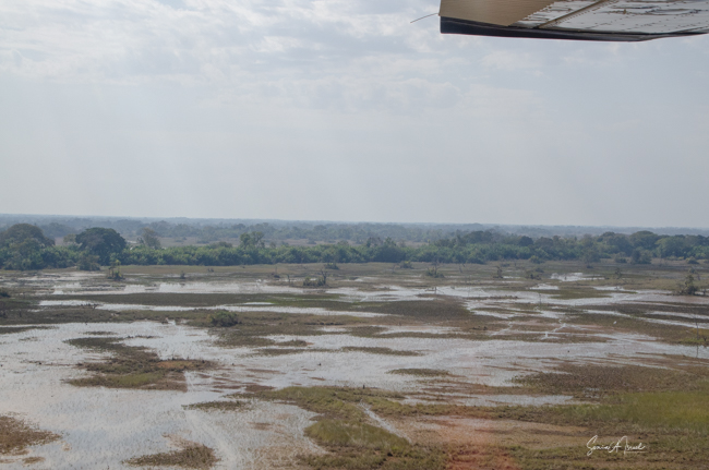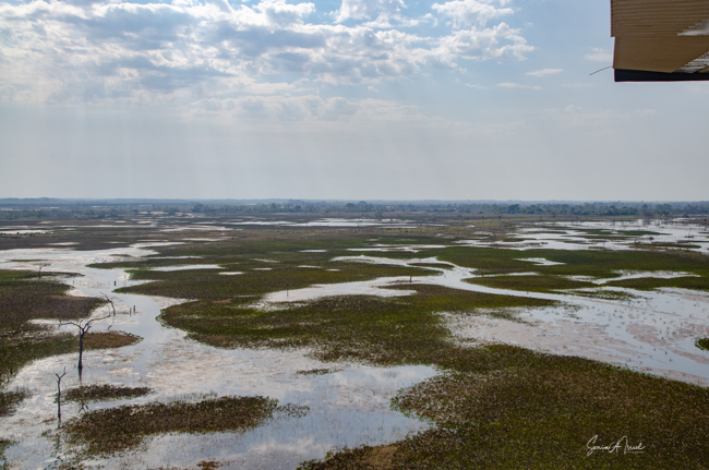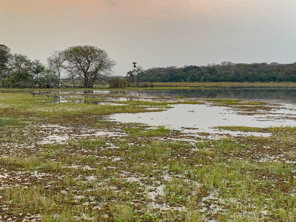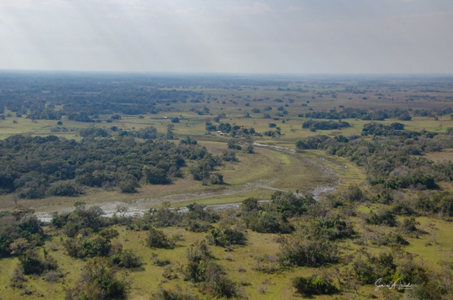 And for that reason, there is a time to go and a time not to go. In the dry season, from May to September, the Pantanal is a flat grassland covering an area about the size of half of France. There are lakes and woodland and one can see the tracks of the animals weaving between them. But in November-March, it is the rainy season with the water level rising and flooding the whole area.