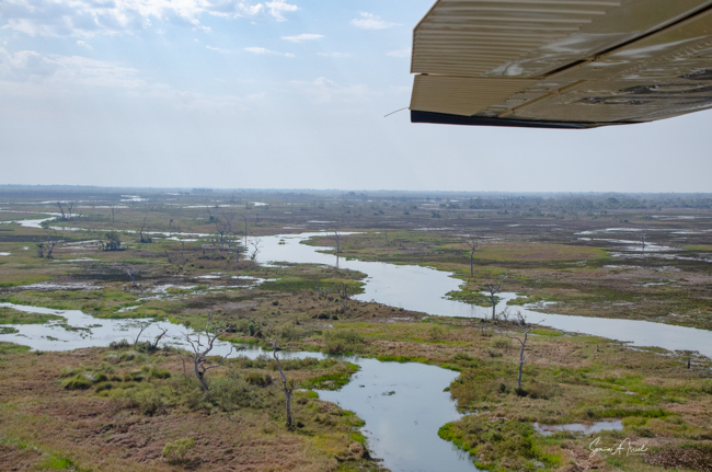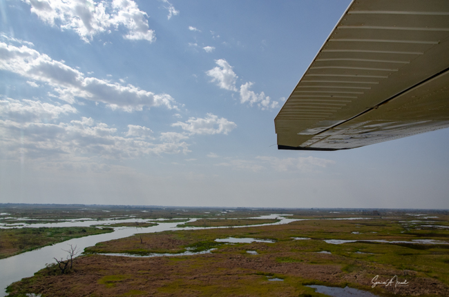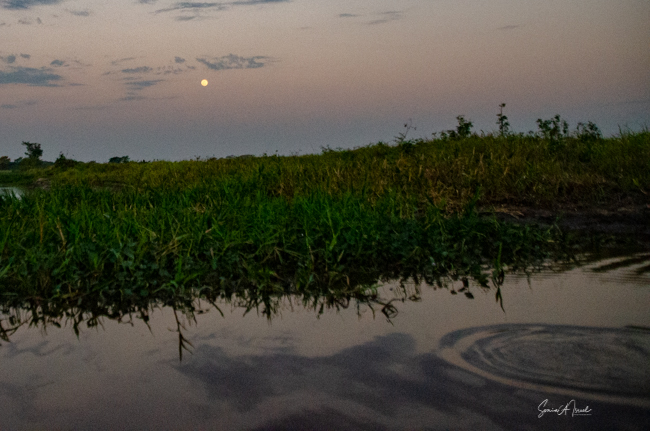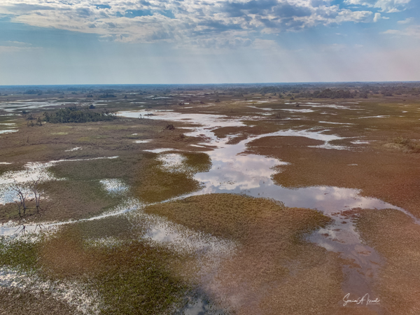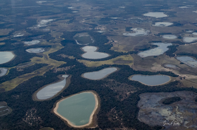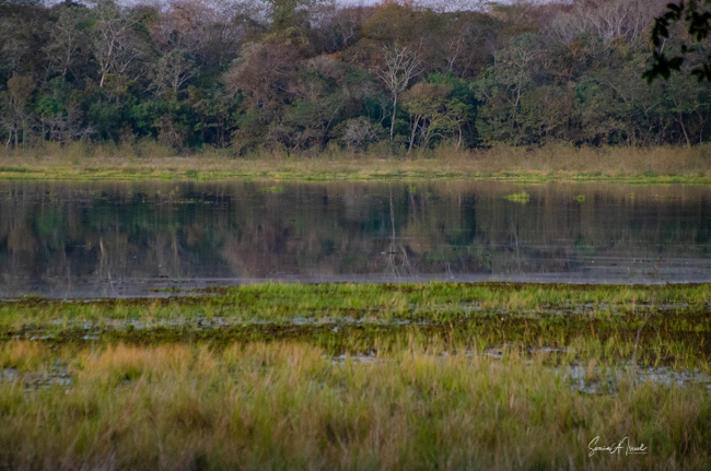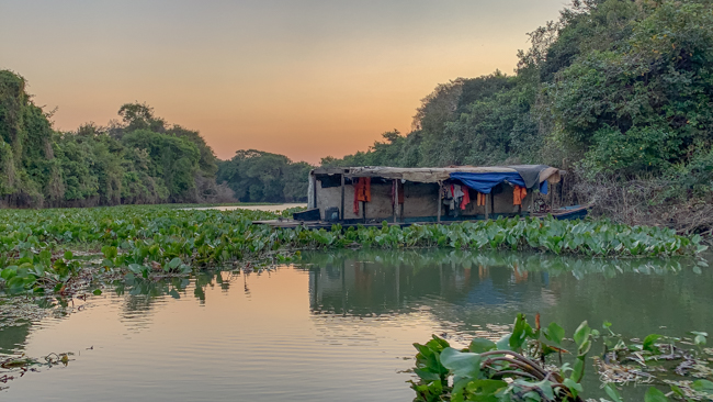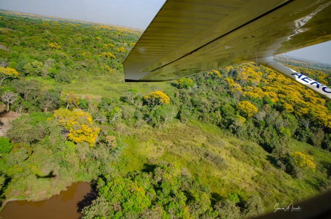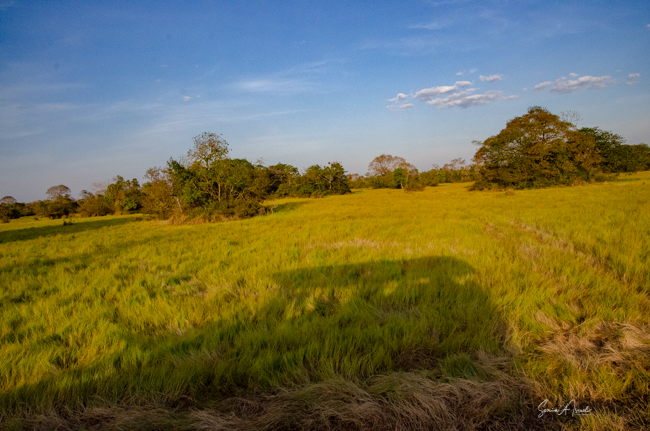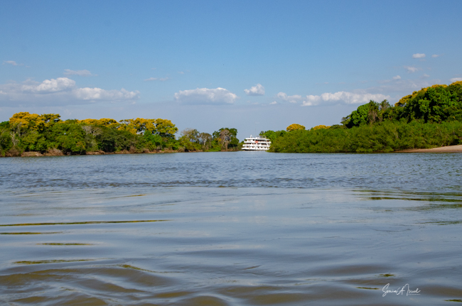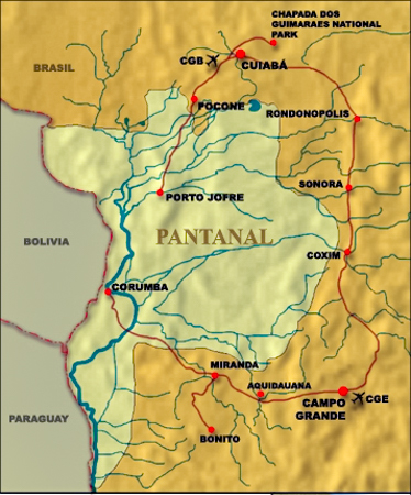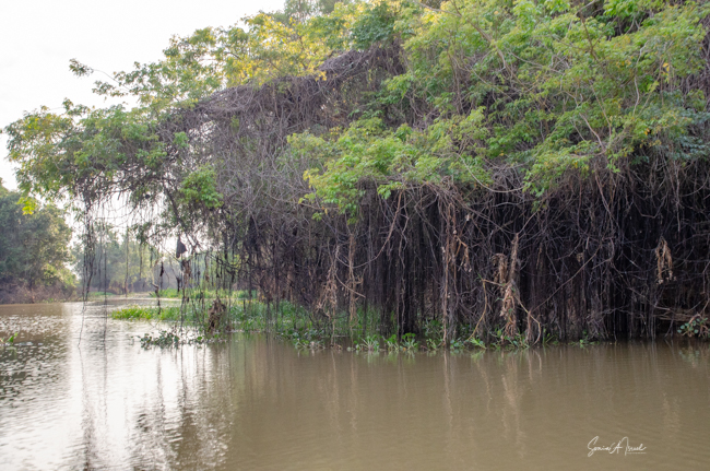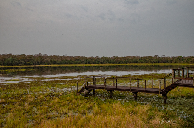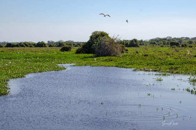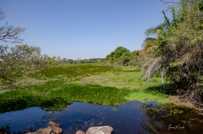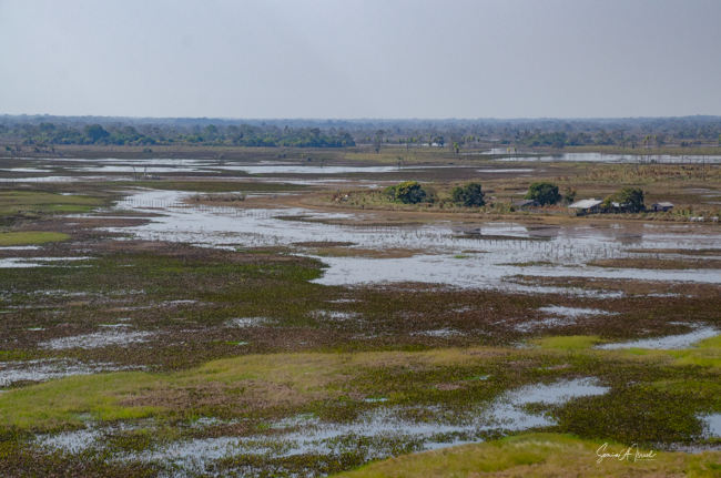 And for that reason, there is a time to go and a time not to go. In the dry season, from May to September, the Pantanal is a flat grassland covering an area about the size of half of France. There are lakes and woodland and one can see the tracks of the animals weaving between them. But in November-March, it is the rainy season with the water level rising and flooding the whole area.