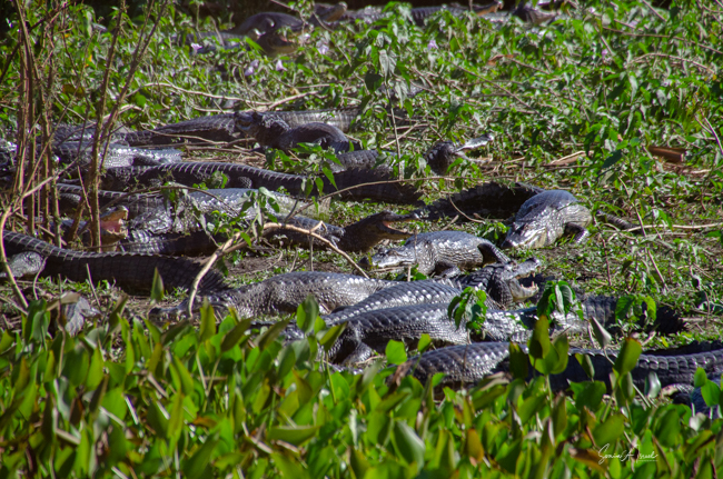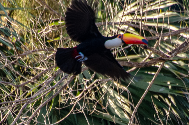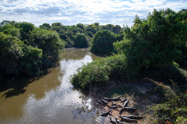 Pantanal comes from the word “pantano” which means swamp in both Portuguese and Spanish. One could think of the Pantanal as a swamp, but really it is the world’s largest freshwater wetland with one of the most diverse and spectacular ecosystems in the world. And it has the highest concentration of wildlife in all of South America – more than the Amazon. There are 698 species of birds, 80 species of mammals, 26 of fish and 50 of reptiles. The area itself is 70,000 square miles. Much of the Pantanal has been named a national park by the UNESCO World Heritage. In fact, the Pantanal is a combination of national parks and privately-owned lands.