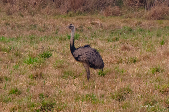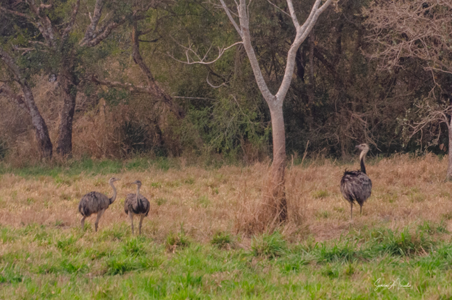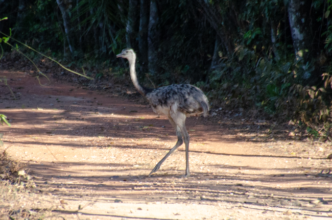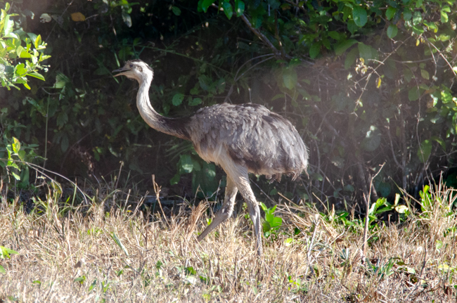 We also saw greater rheas walking in the field, and then crossing the road in front of us. Rheas are interesting birds. They are flightless and are distant relatives of ostriches and emus. They are one of the few birds to have an actual penis. The male can mate with at least 15 partners. The male builds the nest and all of the female birds leave their eggs in the nest while the male sits on them. A few days before they are about to hatch, the male cracks open a few which attracts insects. The insects then serve as the first food for the rest of the chicks.
