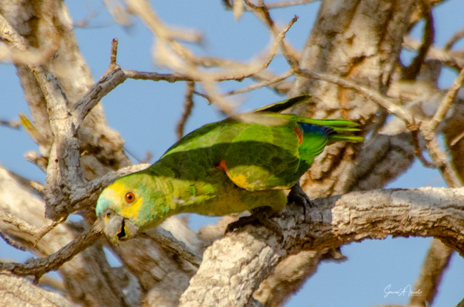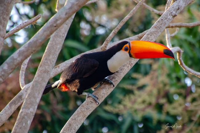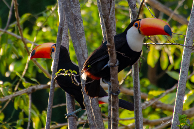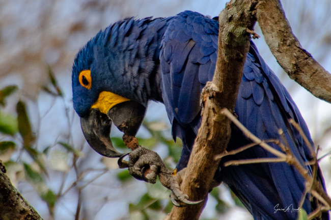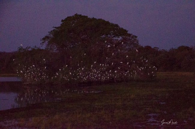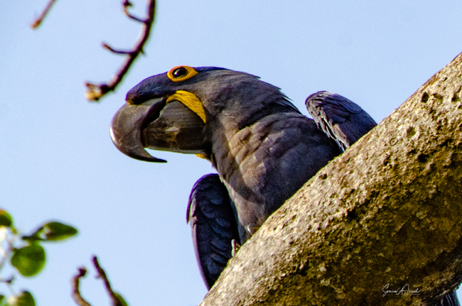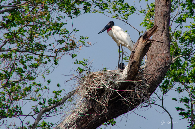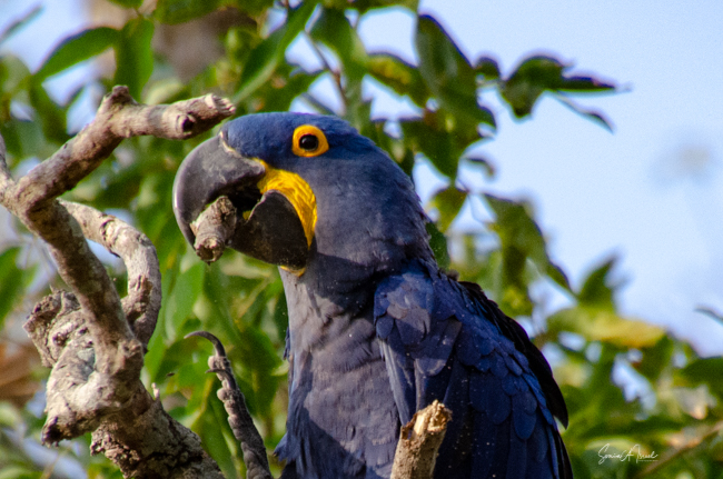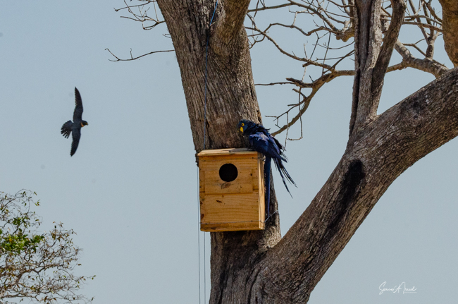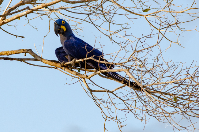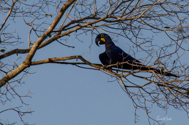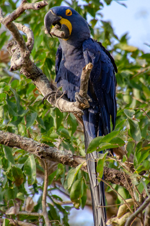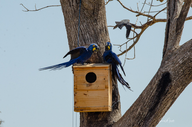 The hyacinth macaw population got so low in the 1980s that they were almost endangered. There are a number of conservation efforts around the country (see below for the conservation efforts in the Southern Pantanal at the Caiman Ecological Refuge), but the owners of this lodge have planted many trees that will eventually serve as homes for the birds. This will take time as the macaws build their nests on the manduvi tree and the tree has to be 60-80 years old to have hollows wide enough to hold the birds and the nest. But as the tree continues to age, it becomes fragile and vulnerable to the heavy winds during the rainy season.