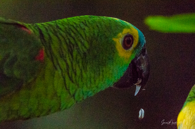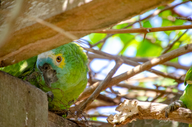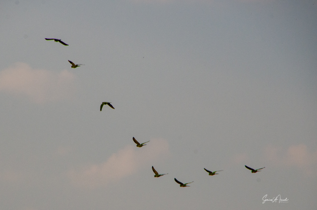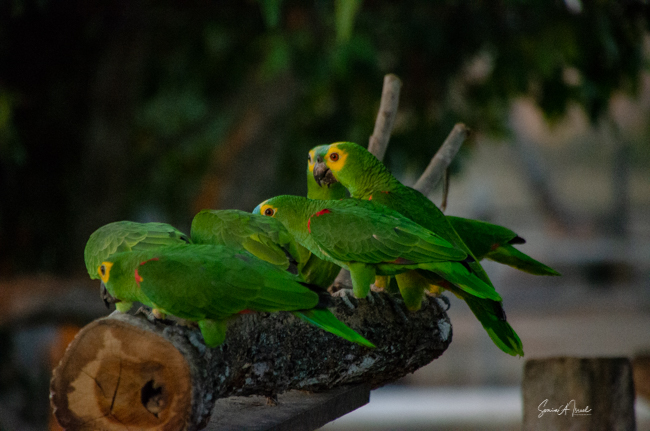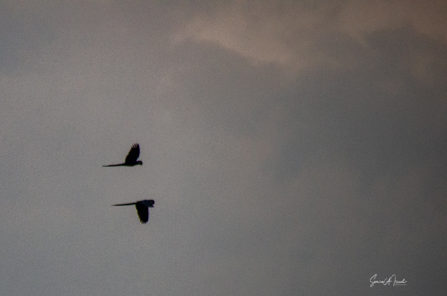 We came close to sunset and there seemed to be hundreds of green parrots enjoying their free meal. Many of the birds end up mating with wild parrots and then bring them back for free food. Who wouldn’t return for free food!? And of course, other birds come and hang out as well.