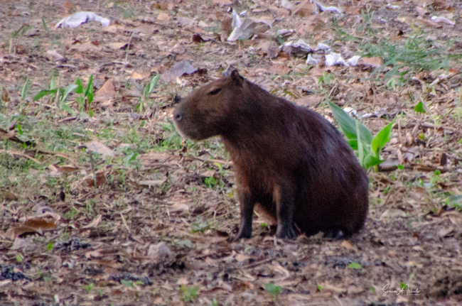 Since I mentioned that I was greeted by a capybara, let’s jump right into the description of them. The capybaras are ubiquitous in the Pantanal. They are everywhere both in the north and the south. We would joke each time we saw one – “Oh look! The elusive capybara!”