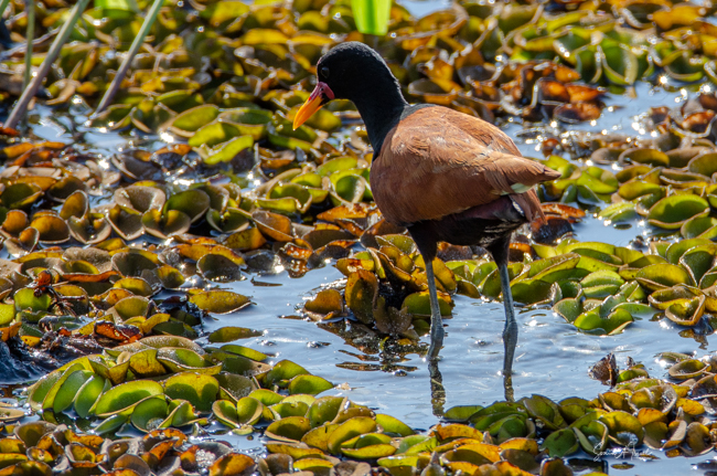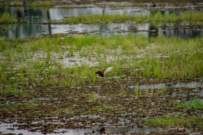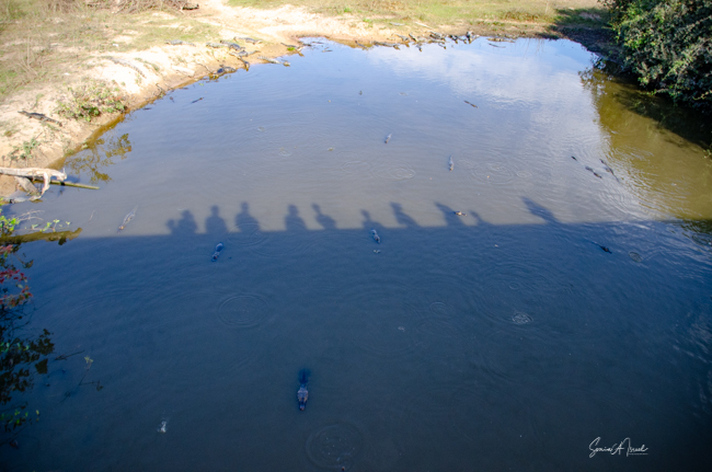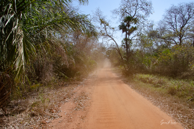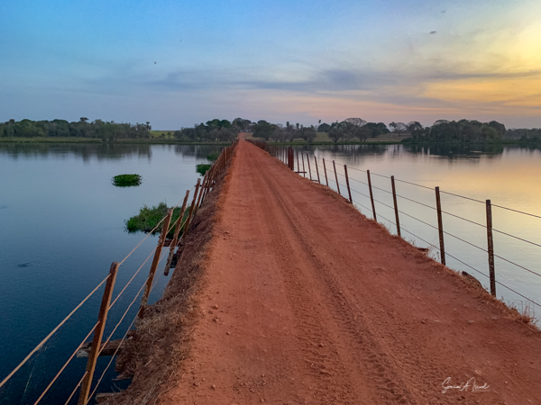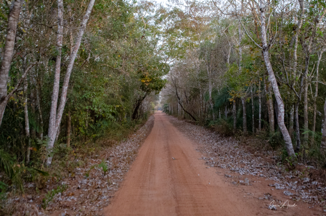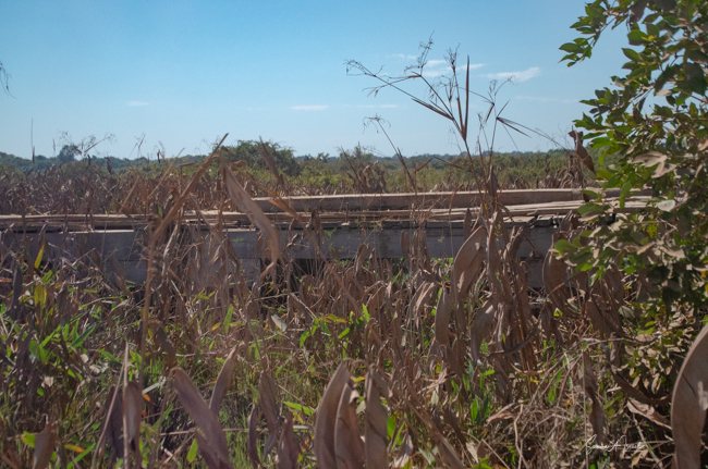 The paved road ended and the Transpantaneira Highway began. Although called a highway this is really a red dirt road originally built in the 1960’s by Brazil’s then militarized government to transport the Brahmin cattle to the meat-processing plants in the south. It was originally supposed to go all the way to Corumbá, but 93 miles later, when they reached Porto Jofre on the Rio Cuiaba, that plan was aborted. The earth that was cleared away for the highway’s construction left large holes that have become ponds, canals, and lagoons which now attract all sorts of wildlife. The road goes through savannas, marshes, and forest patches. And it has over 122 (more or less) wooden bridges. We were only going part of the way today, but would end up driving the rest of it in a few days.