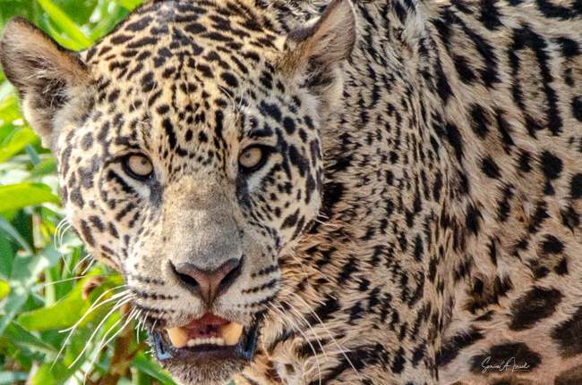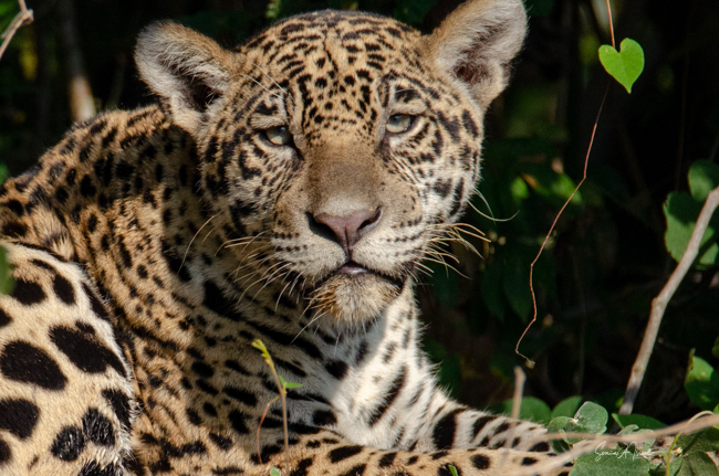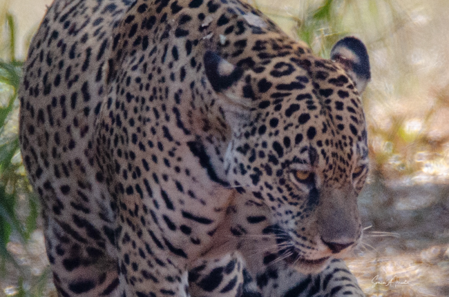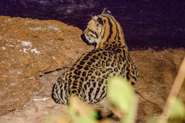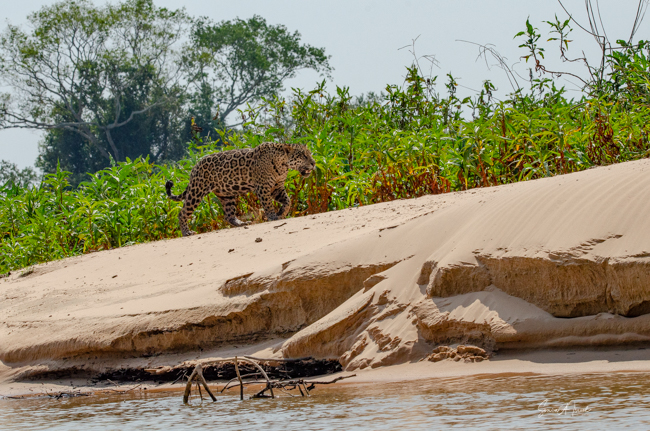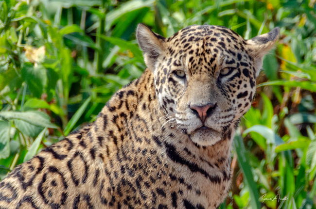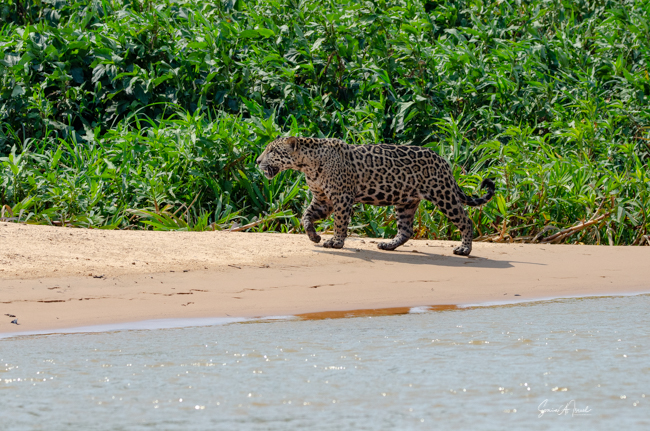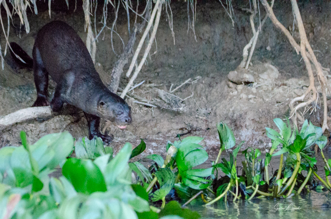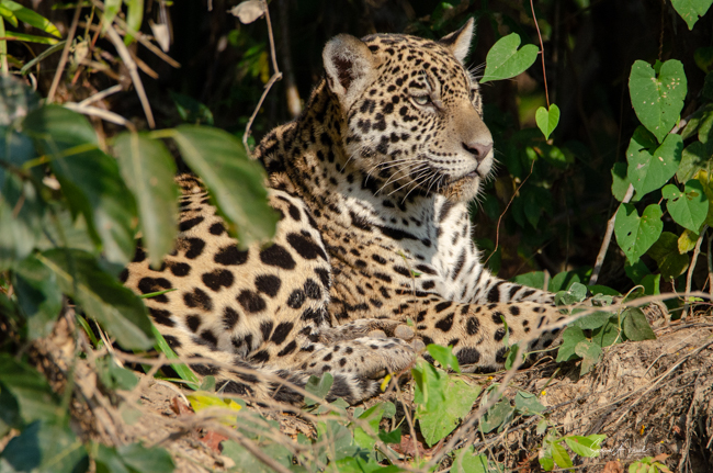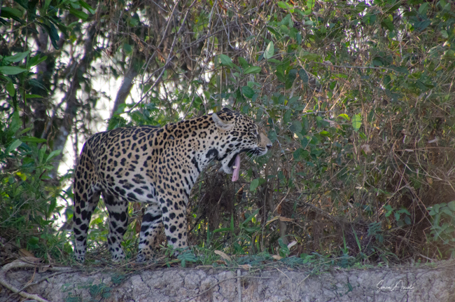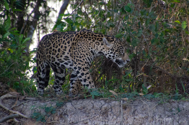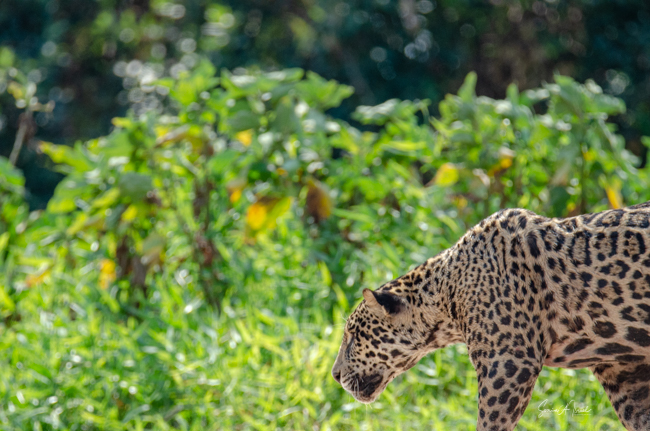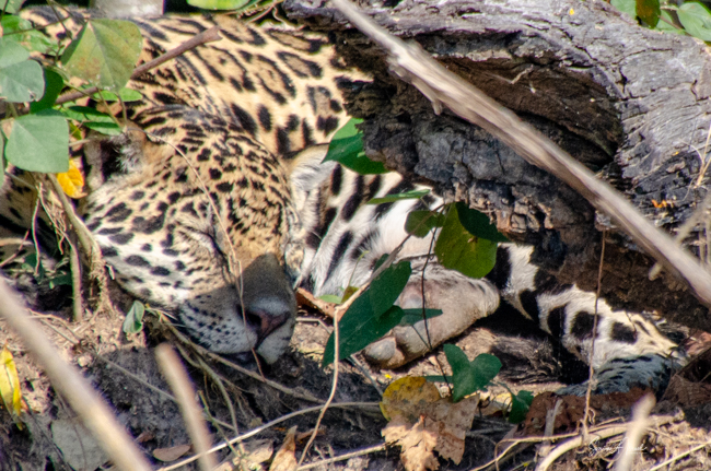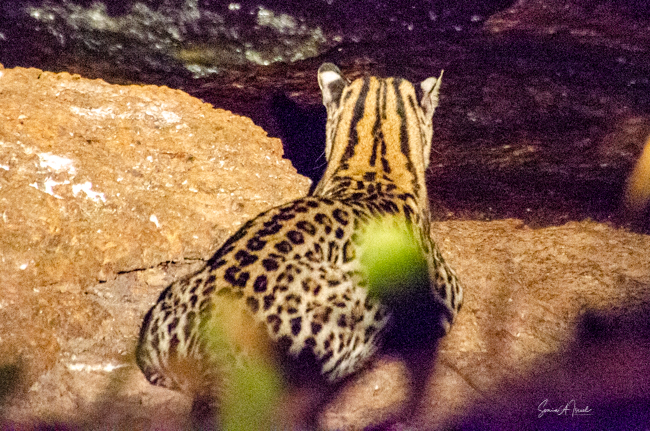 Many jaguars have been identified here, and as I mentioned above, they are recognized by their facial roses (spots). Seven out of 50 on the property, wear radio collars. But in all, 140 different jaguars have been recorded. Some visit from other places. The recordings occur on 80 cameras placed around the 240 square miles owned by the Caiman Lodge. Since the jaguar is often nocturnal, infrared lights are used so you can see the behaviors on the video.