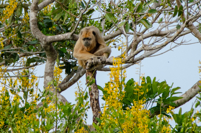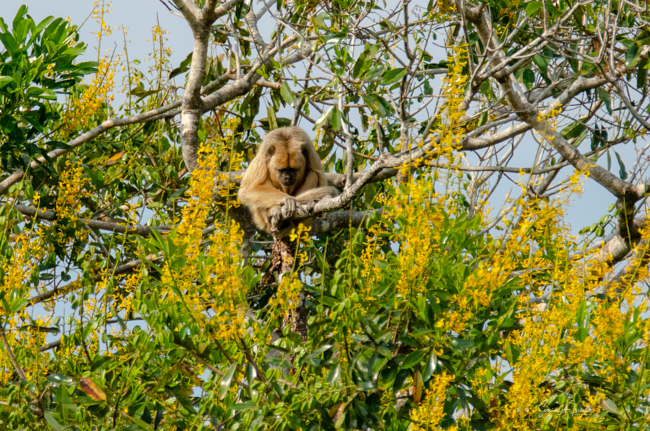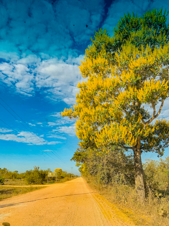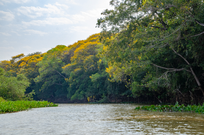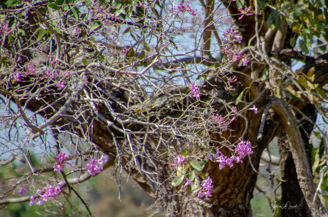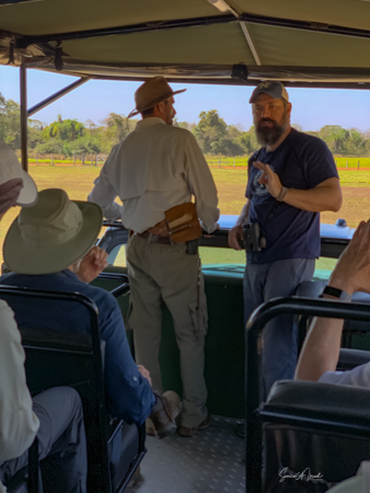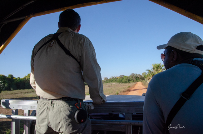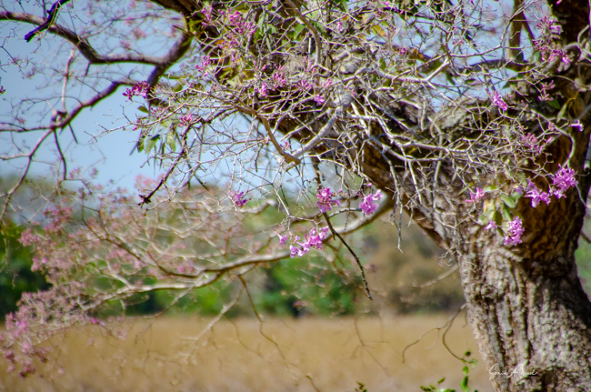 Once I had settled in, we were off for a four-hour afternoon drive in an open-air safari truck, mostly still on the grounds of the Araras Pantanal Eco Lodge. We entered an area that was quite reminiscent of Africa, with savanna grass, acacia trees, and jacaranda trees that sadly were not yet in bloom. But there were still lots of blooming candelabra trees.