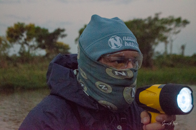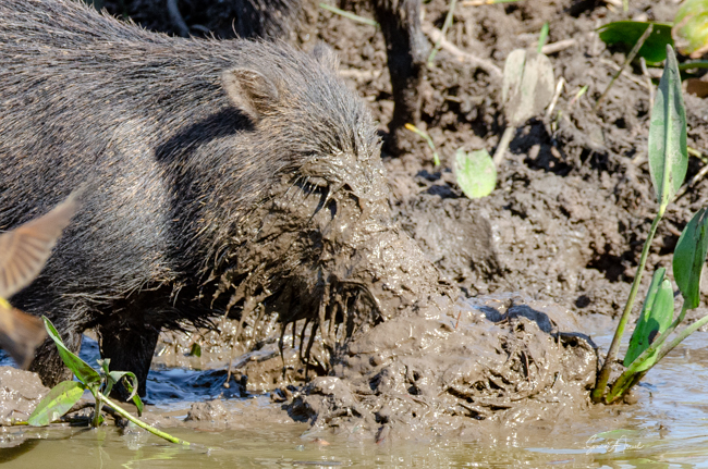 As soon as they all left the pond, a very muddy caiman came crawling out. Zapa said this one is likely to be starting to burrow into the mud to hibernate.