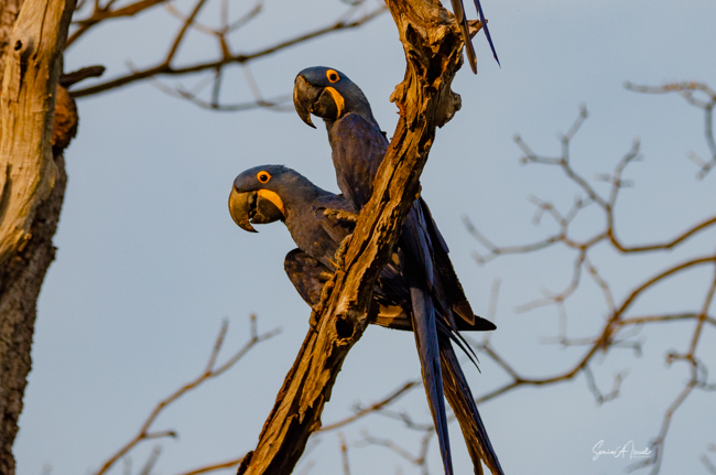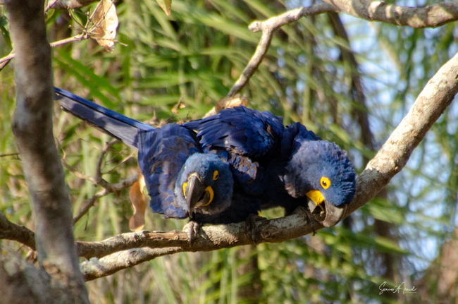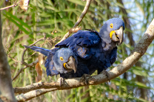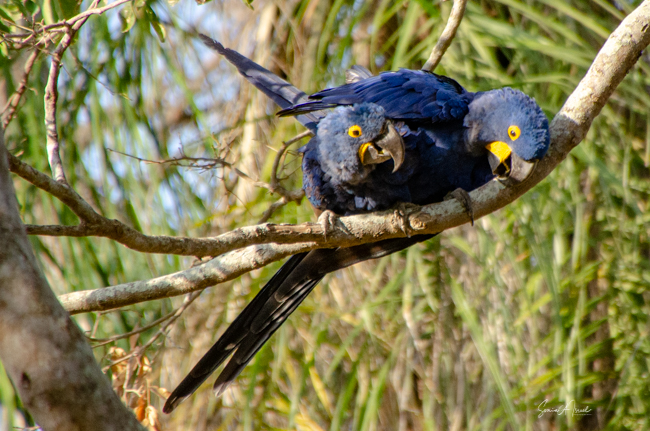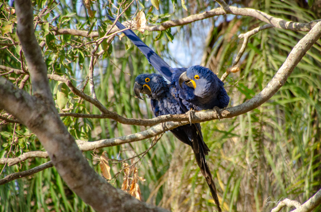 As mentioned above in the capybara section, we were here during a full moon and on our last morning at the Pantanal North Porte Jofre (see below) we saw two hyacinth macaws mating. They sat on a tree branch, right next to each other, and you could see the males tail go up and down as they mated.