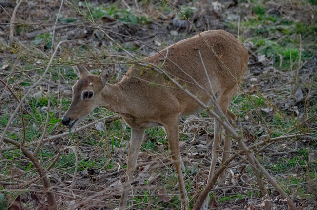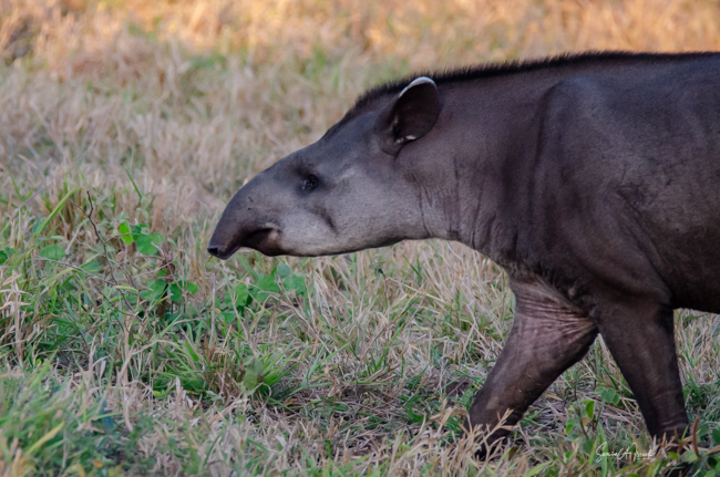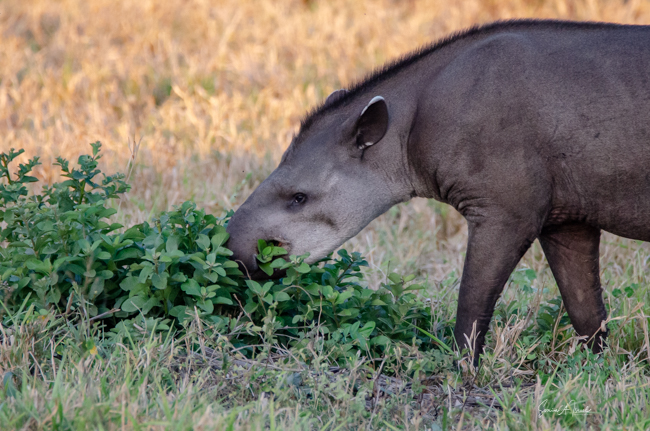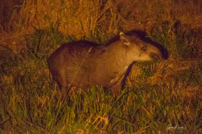 Although tapirs are usually nocturnal, apparently the heat had broken enough that this one had come out in the late afternoon. We sat in the truck watching, taking pictures, and slowly following him (yes, definitely a him) as he meandered along, eating.