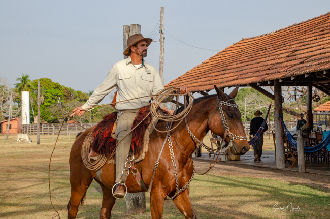 The cattle ranches here would not survive without the Pantaneiros. Their culture is deeply rooted in the rural tradition with a South American twist. They work and live just like their ancestors of 200 years ago. This is a culture that understands how to work in this unique landscape that is dry half the year and flooded the rest of the time. During the season of rains and floods, the horses have to cross water that is chest high and full of caimans. And these cowboys can lasso the caiman or a giant anteater just as easily as a cow.