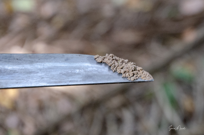 At one point the road was blocked by tree limbs. Zapa and Chaco pulled out their machetes and hacked away. That cleared the path, but it turned out that the limbs were covered in ants which then crawled all over Zapa. He was not happy.