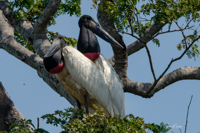Ruthi shared her notes from their walk. Zapa told them that Brazil has more fresh water than any other country in the world. There was a stork nest right around our lodge. Zapa said that storks are stubborn. Once they decide the location, they. will persist until it is built. This nest took over a year to build. Before the first eggs were laid, the male died but the young female apparently found another male who accepted this nest and is now adding soft material to buffer the eggs. Zapa said there is a tree elsewhere on the ranch where one can see a jabiru nest on one branch, a parakeet nest lower down in the tree, and then an egret nest below that one. Birds do not generally bother each other. He said that Ibis babies are the WORST!!! They vocalize in a scream for essentially their first two months.