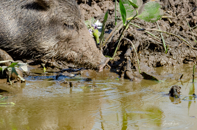 Later in the day we came back to this same area and they were all cuddled up together napping It was hilarious to watch as they each wiped off their muddy spouts on one another and then cuddled down, body to body. All but one who was still digging around the mud. That one must have insomnia.