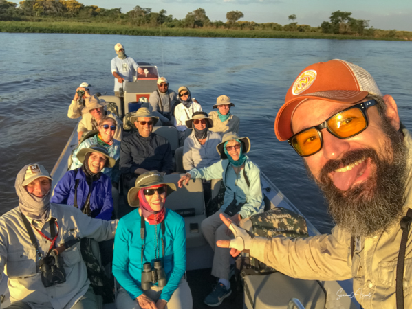 Karl, who kept track of every mammal and bird, said our final total was 149 birds and 25 mammals (here are the mammals I saw: Azara Agouti, giant anteater, nine-banded armadillo, capybara, South American coati, gray brocket deer, Marsh deer, Pampas deer, red Brocket deer, crab-eating fox, jaguar, Howler monkey, ocelot, giant otter, collared peccary, white-lipped peccary, Brazilian rabbit, Brazilian tapir), and 5 reptiles (Yellow anaconda, Paraguayan caiman, green iguana, Eastern Collared spiny lizard).